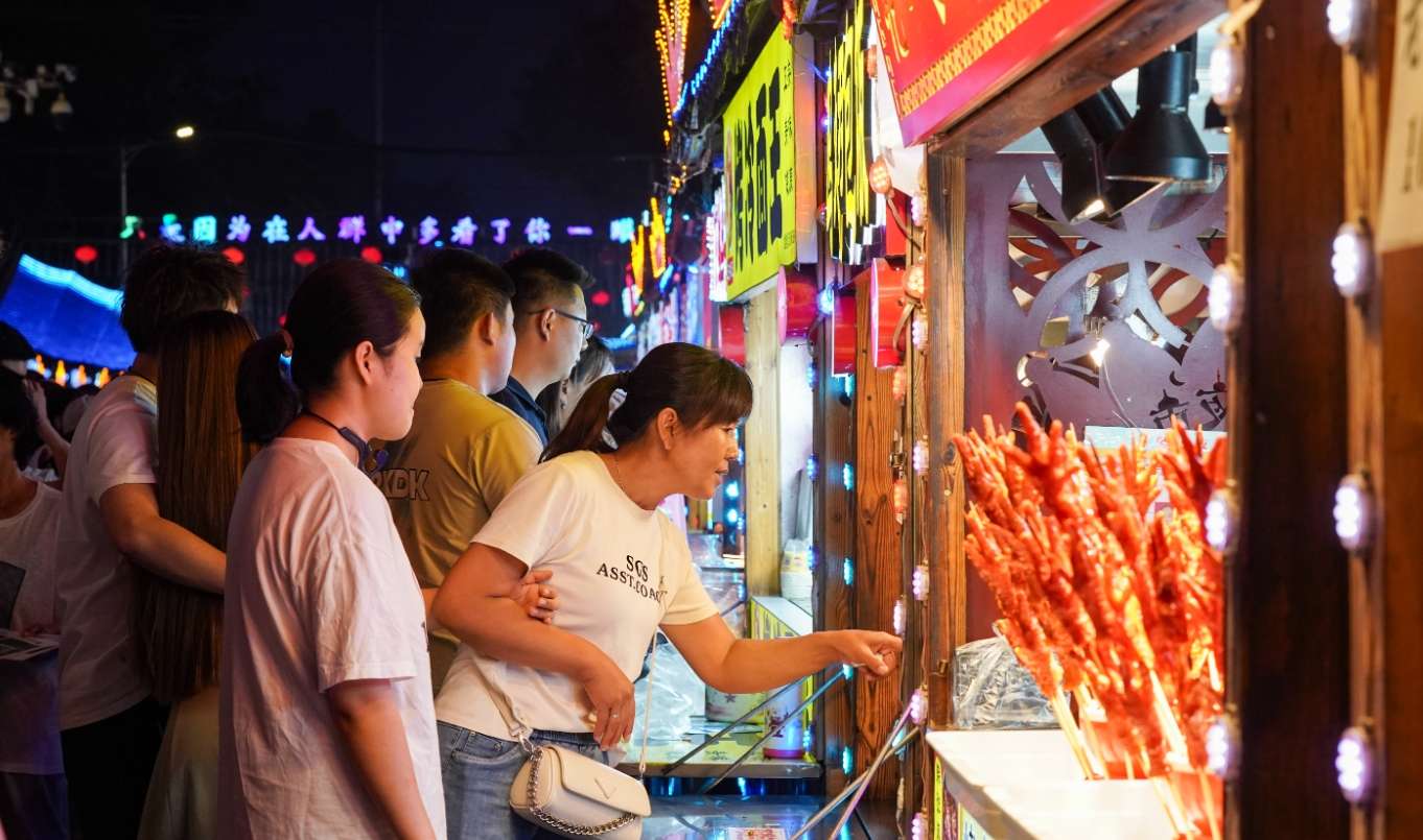 中国民众在夜市品尝美食,感受夏日烟火气。(图片来源:中新社资料图)