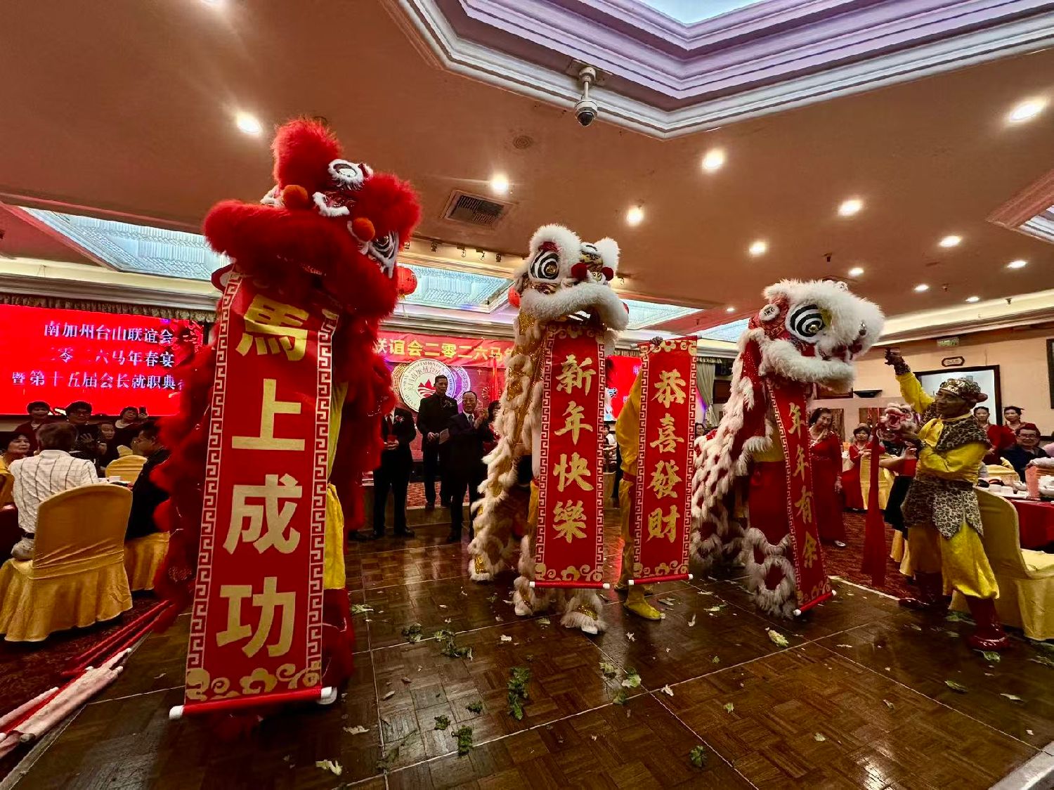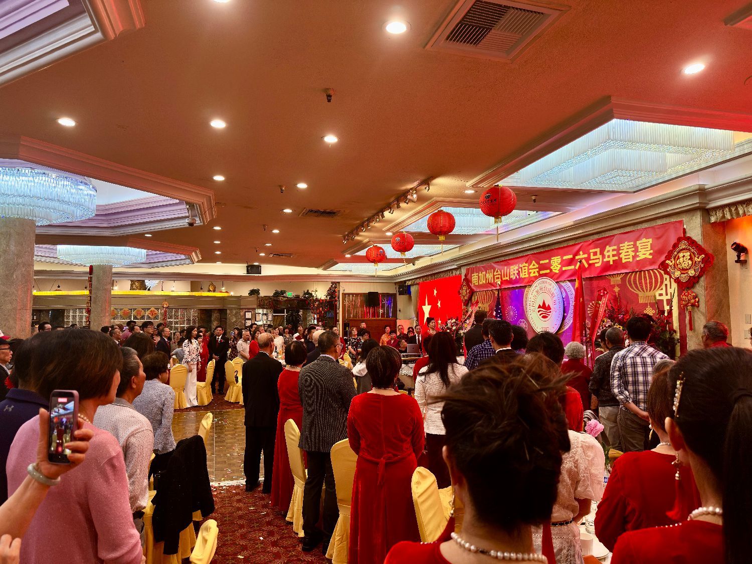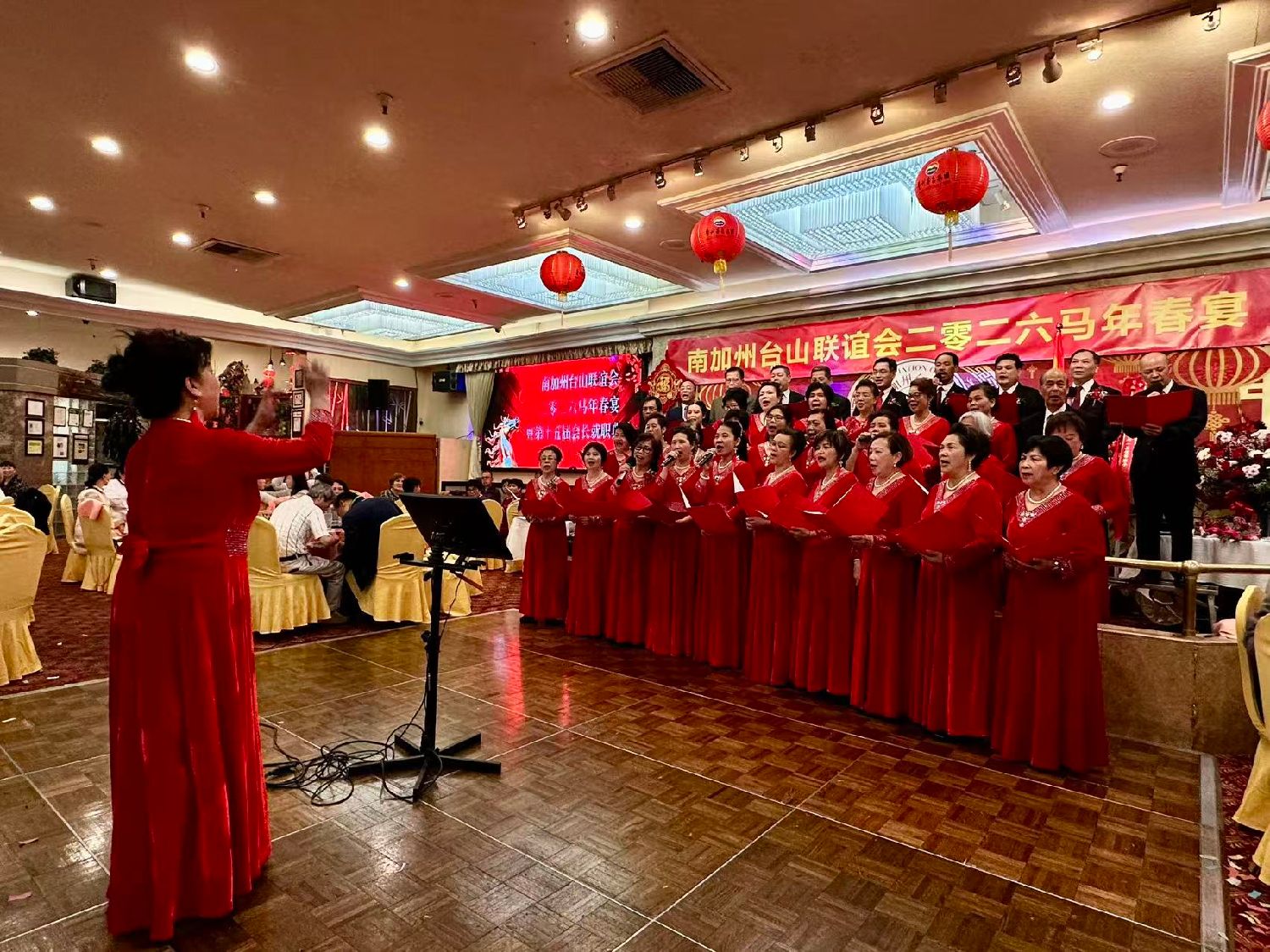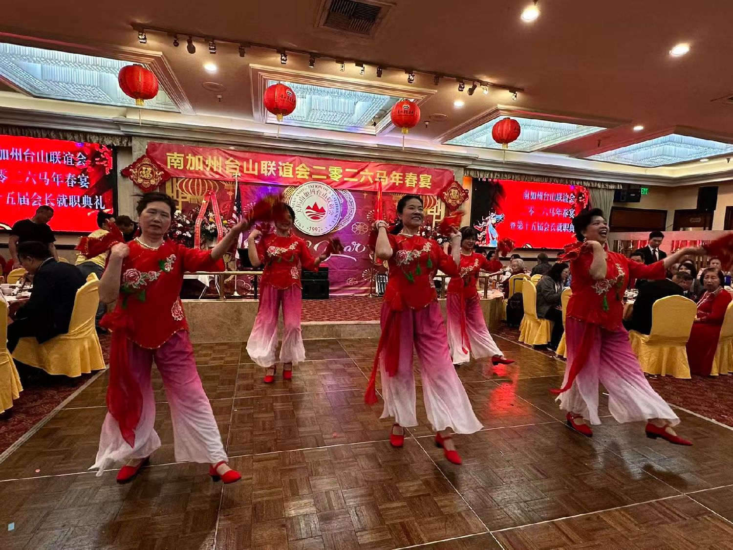 【本报讯】记者甄松伟报道,2月28日晚,南加州台山联谊会假座蒙特利公园市NBC海宝潮粤酒家举行2026马年春宴暨第十五届新会长就职典礼。