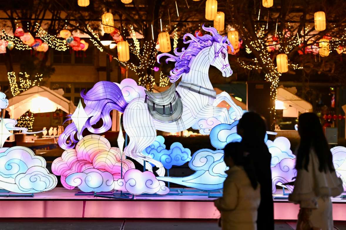 3月2日晚,福建福州中国船政文化园灯火璀璨,市民纷纷前往参观正在举办的第二十四届“两马同春闹元宵”灯会。(图片来源:中新社)