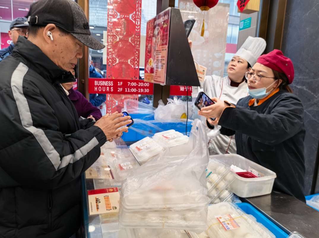 3月2日,上海市民在购买汤圆。随着元宵节临近,上海老字号汤圆热销。(图片来源:中新社)