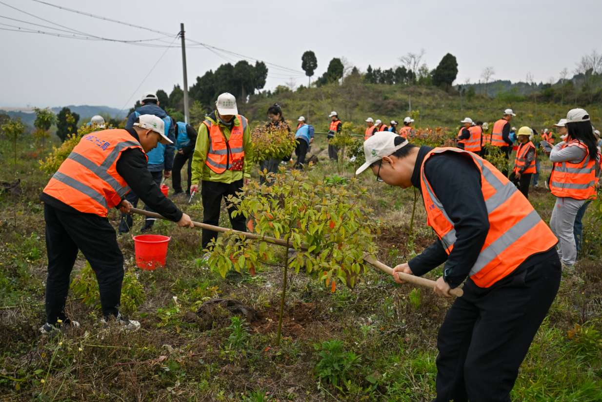 3月12日,第48个中国植树节。2026年天府龙泉山“包山头”春季义务植树活动在四川成都龙泉山城市森林公园启幕。(图片来源:中新社)