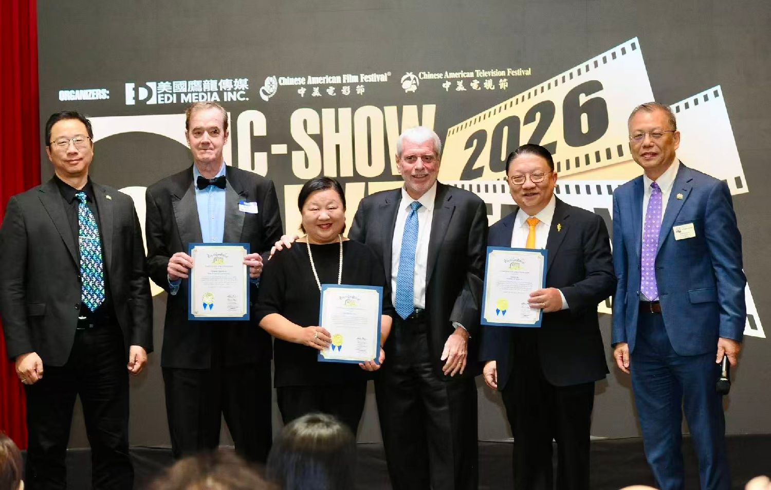 2026C-Show LIVE!颁奖活动上多位政要与影视专业人士担任颁奖嘉宾,为到场的获奖者颁发荣誉: