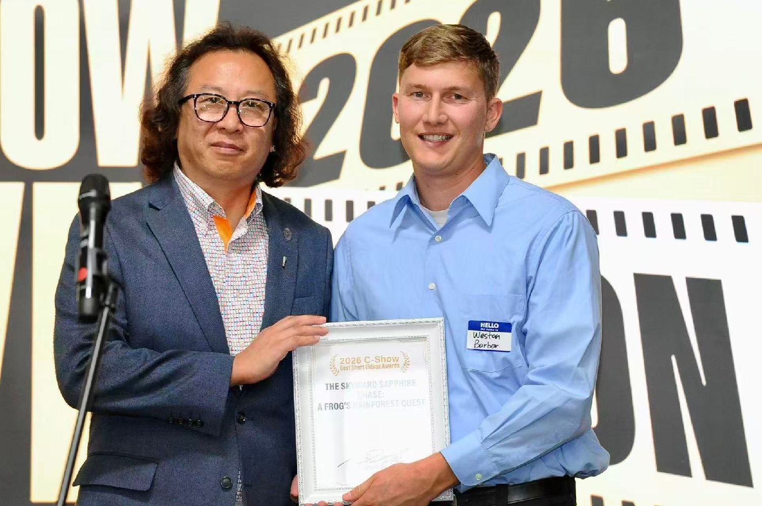 •中美电影节|中美电视节委员、著名作曲家苏隽杰为《THE SKYWARD SAPPHIRE CHASE:A FROG'S RAINFOREST QUEST》导演Weston Barber颁发“最佳微视频奖”