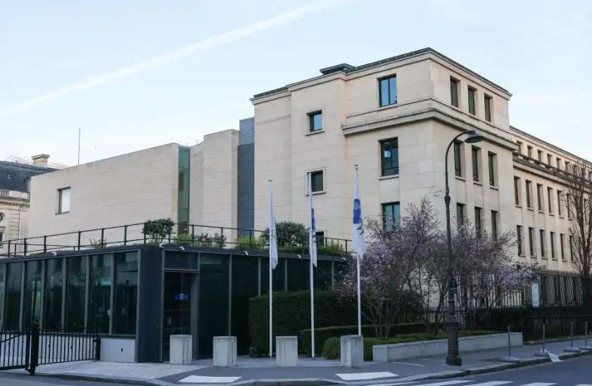 图为3月15日在巴黎拍摄的经济合作与发展组织总部。(图片来源:新华社)