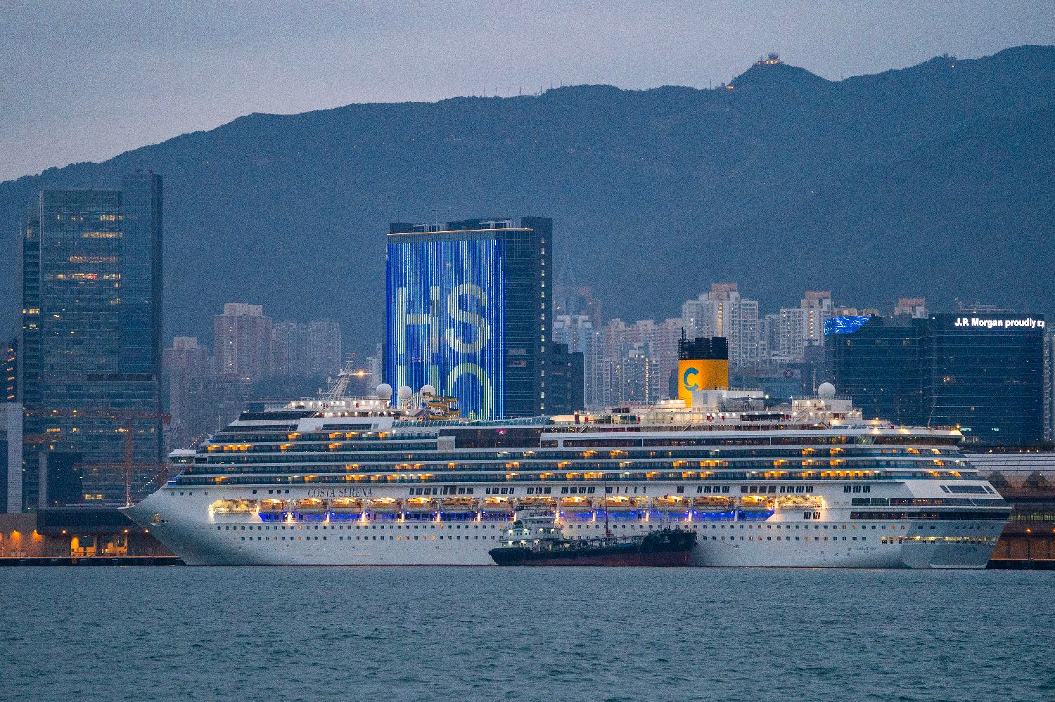 2025年3月9日,“歌诗达莎伦娜”(Costa Serena)号邮轮停泊于香港启德邮轮码头。(图片来源:中新社)
