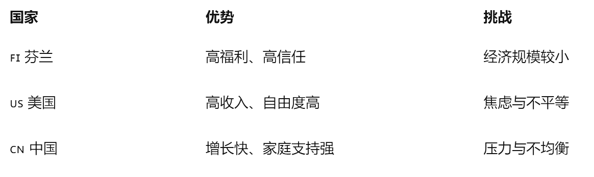幸福排名背后:中美芬三国对比观察