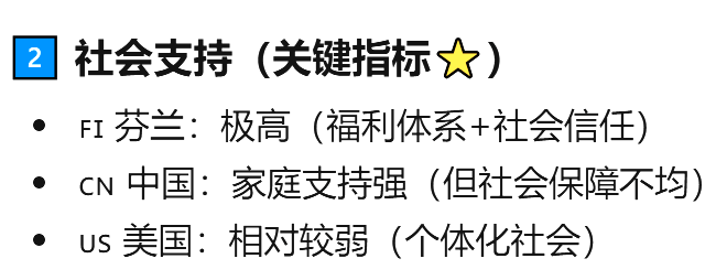 值得关注的是,报告强调的六大指标——收入、社会支持、健康寿命、自由度、慷慨程度及廉洁度——在三国间呈现明显差异。其中,“社会支持”与“信任度”被认为是决定幸福排名的关键变量。芬兰在这两项指标上表现突出,而美国与中国则面临各自不同的结构性挑战。