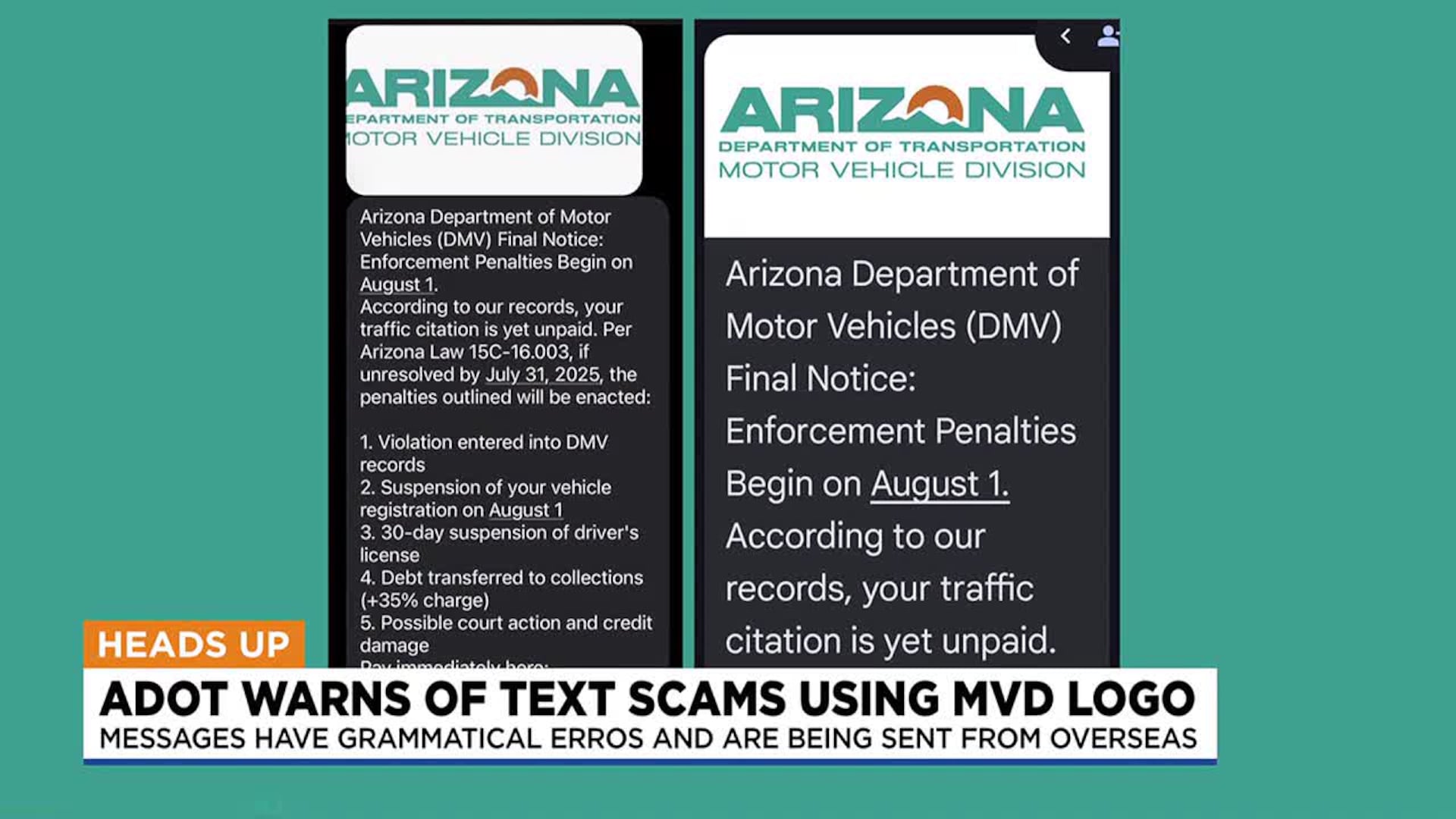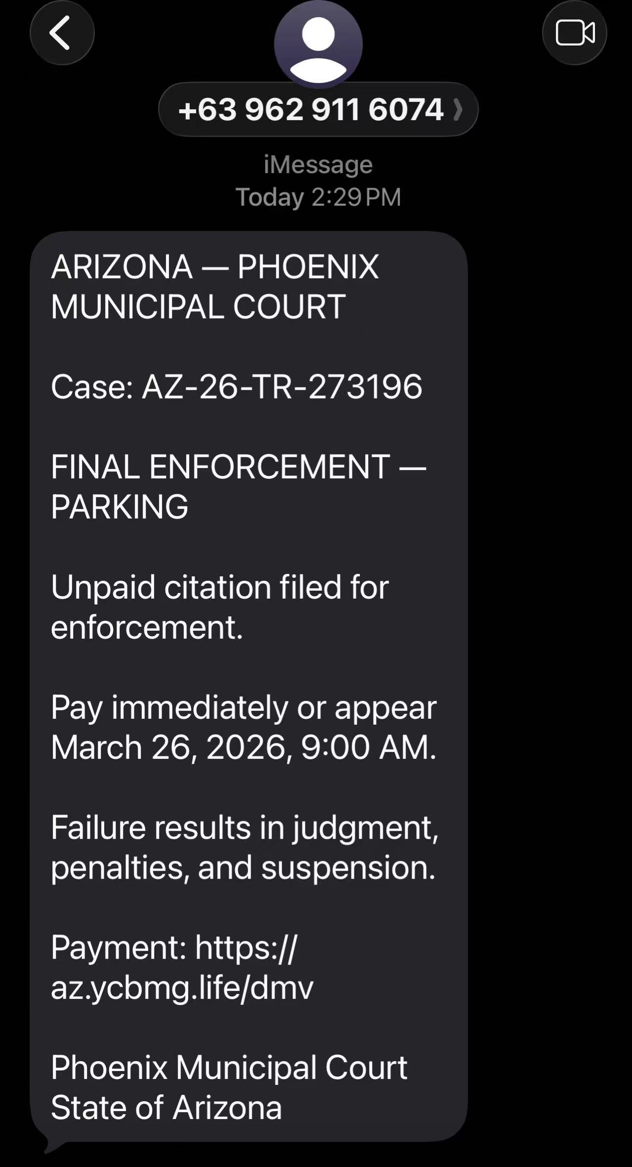 亚利桑那州交通部(ADOT)及机动车部门(MVD)已多次发出警告,指出这类“未付交通罚单”或“听证会通知”均为伪造,不具任何法律效力。ADOT明确表示:州政府不会通过简讯发送交通罚单通知,也不会要求民众扫描二维码或点击链接立即付款。亚利桑那州没有“Department of Motor Vehicles(DMV)”或“Department of Vehicles”这样的机构,正确名称为Motor Vehicle Division(MVD)。诈骗讯息中常出现“State of Arizona Department of Vehicles”或错误使用“DMV”“AZDOT”等名称,这些均为明显破绽。