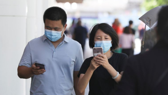 资料图为市民在北京街头浏览手机。(图片来源:中新社)