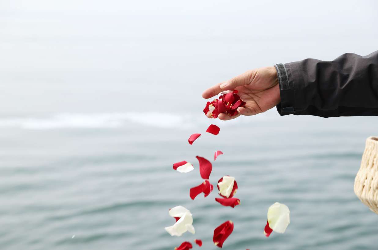 3月29日,由北京市、天津市、河北省三地民政部门联合主办的“碧海寄情,爱在沧溟”——2026年京津冀骨灰海葬启航活动在天津渤海湾举行。图为逝者家属撒花纪念逝者。(图片来源:中新社)