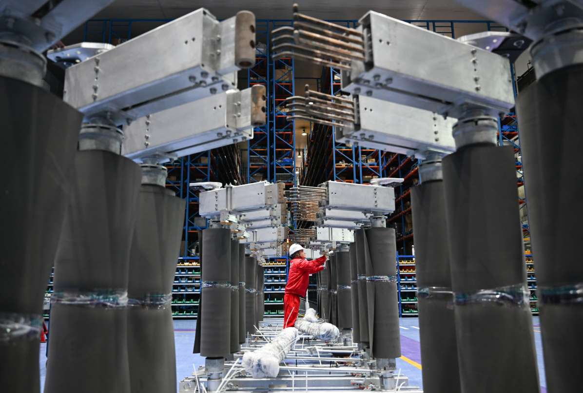 西门子能源杭州工厂的工作人员生产用于中国电力系统的隔离开关。(图片来源:中新社资料图)