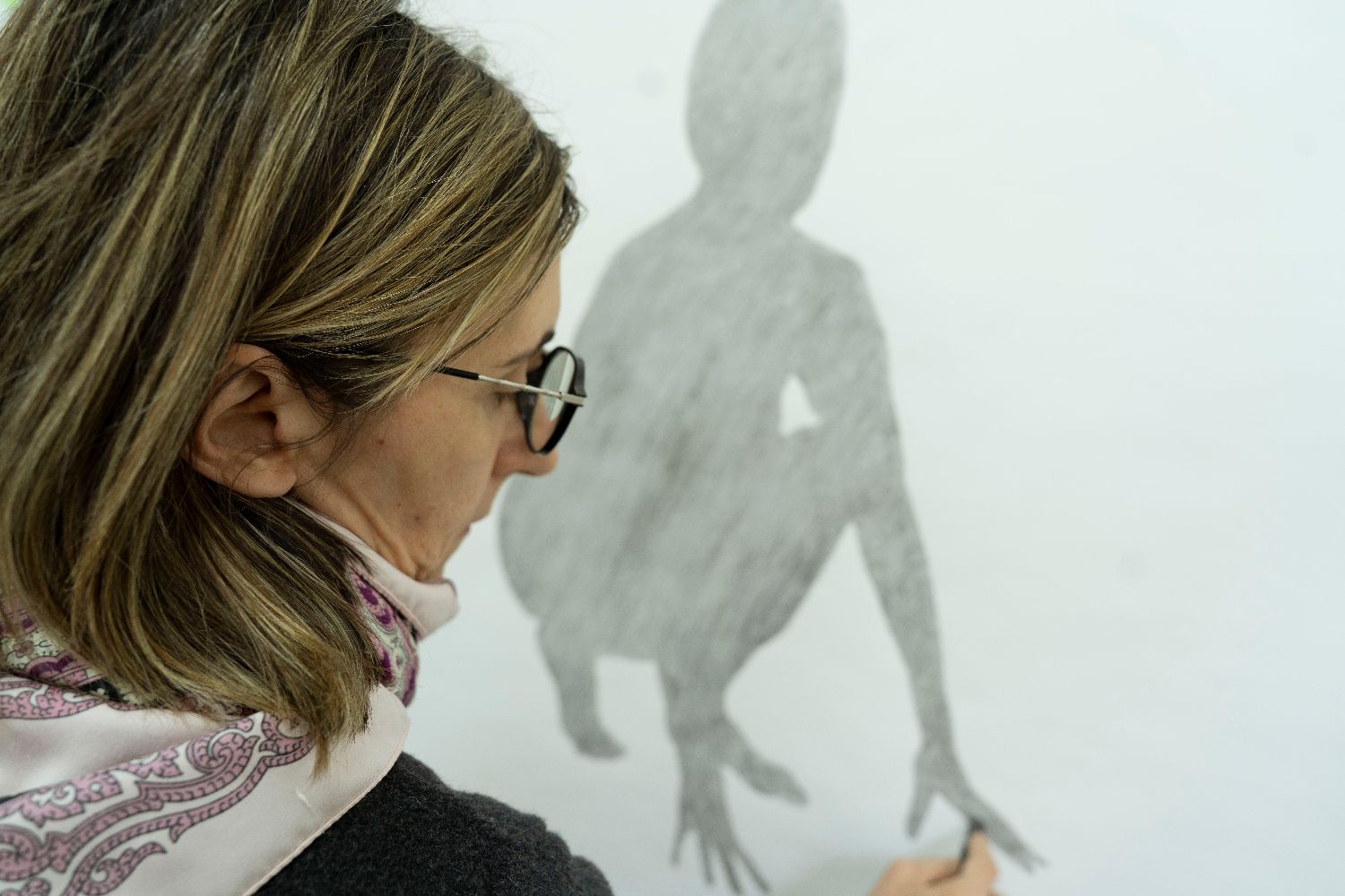 名为《定风波》的铅笔绘与国画作品,是斯帕齐亚尼理解东方留白艺术后的再创作;她与中国绣娘携手合作,以中式窗帘、墙布为创作基底,将其艺术作品中的标志性符号巧妙融入;她还尝试将重庆的城市地图与人群剪影结合,形成富有城市记忆的艺术素材。