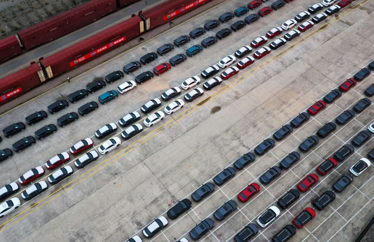3月23日,福建宁德陆港内等待装载出口的中国商品车。(图片来源:中新社资料图)