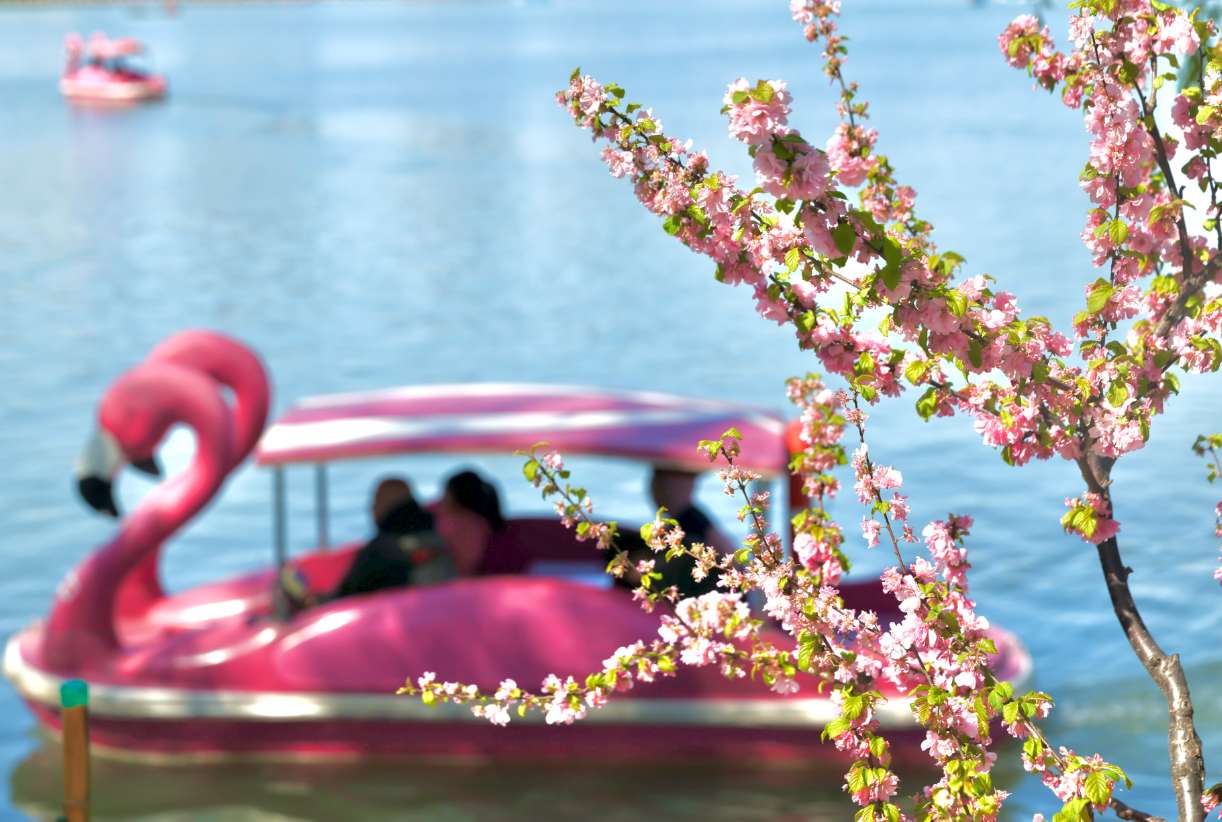 4月6日,市民在北京玉渊潭公园乘船游览。(图片来源:中新社)