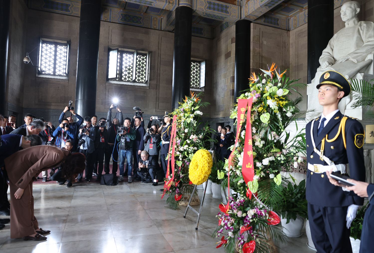 4月8日上午,国民党主席郑丽文一行拜谒南京中山陵。(图片来源:中新社)