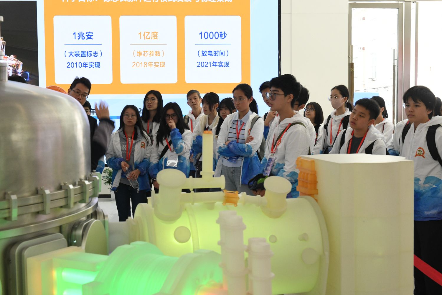 在合肥科学岛,有“人造太阳”之称的全超导托卡马克核聚变实验装置(EAST)多次刷新世界纪录。学子们在该装置前主动提问、认真聆听,直观感受人类探索清洁能源的不懈努力。