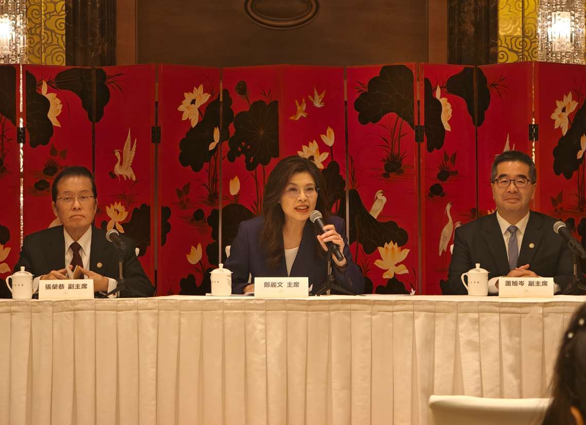4月10日,郑丽文在北京召开记者会。(图片来源:中新社)