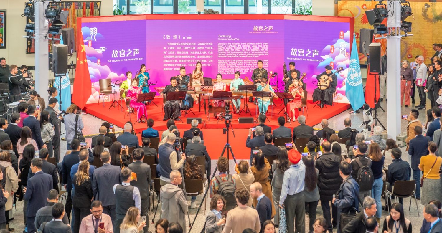 当日,故宫博物院通过沉浸式数字展览与实景复原,首次在维也纳联合国总部向世界全景式呈现其百年典藏与建筑美学。“数字时代的故宫博物院”专题讲座受到欢迎。中央民族乐团奏响“故宫之声”专场音乐会,与《中秋帖》《伯远帖》等故宫传世藏品音画交融。中国自主研发的先进智能具身机器人现场表演太极拳,展现中华文化与智能智造的珠联璧合。(完)
