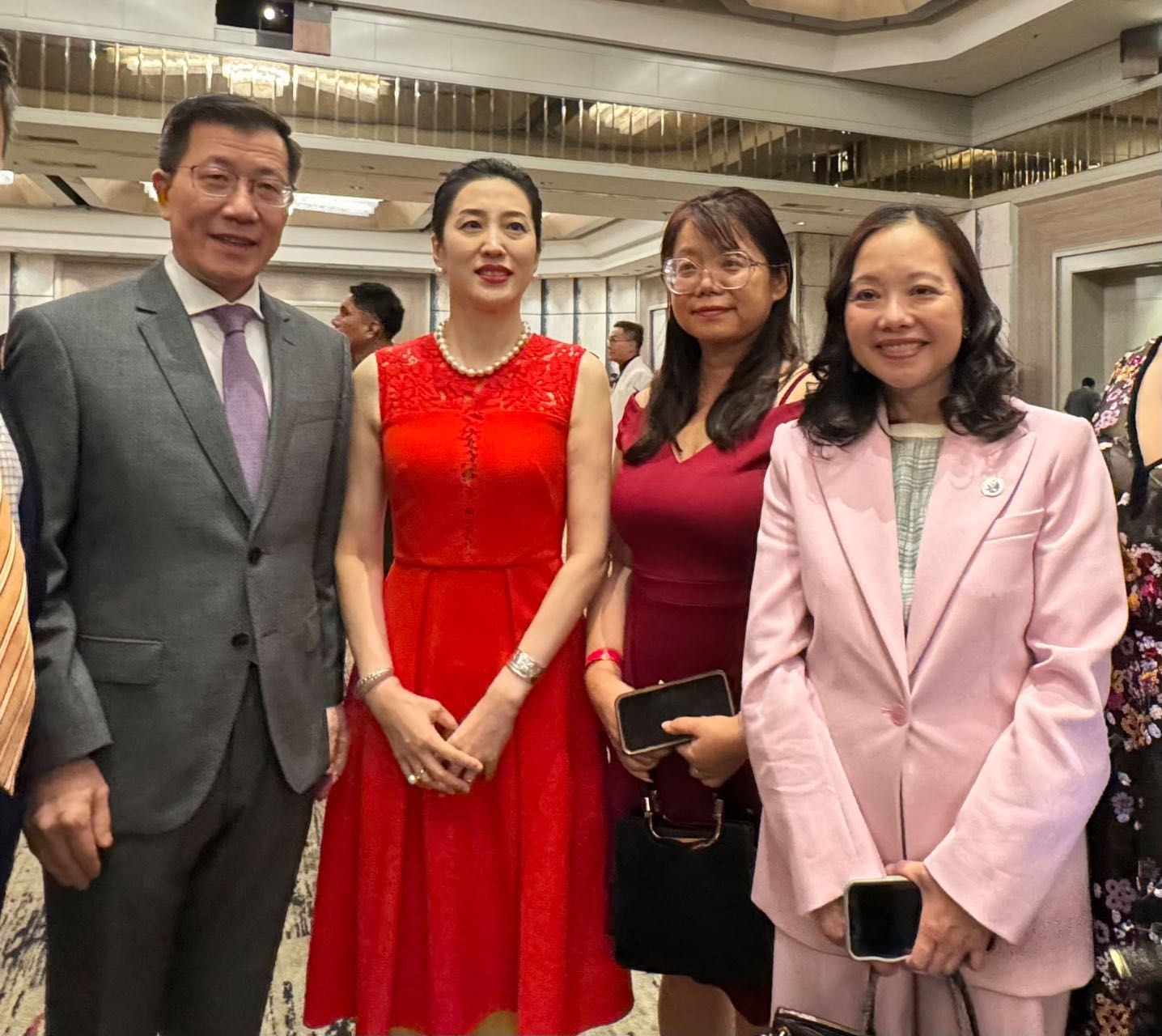 最后,郭少春举杯祝福,为中华人民共和国繁荣昌盛,为中美人民的友谊,为各位来宾身体健康,事业顺利,万事如意,干杯!