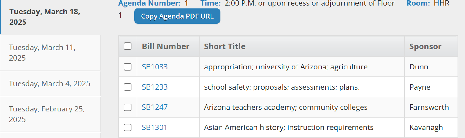 听证会下午2时开始。据教育委员会会议议程,SB1301将排在第四个议程:
