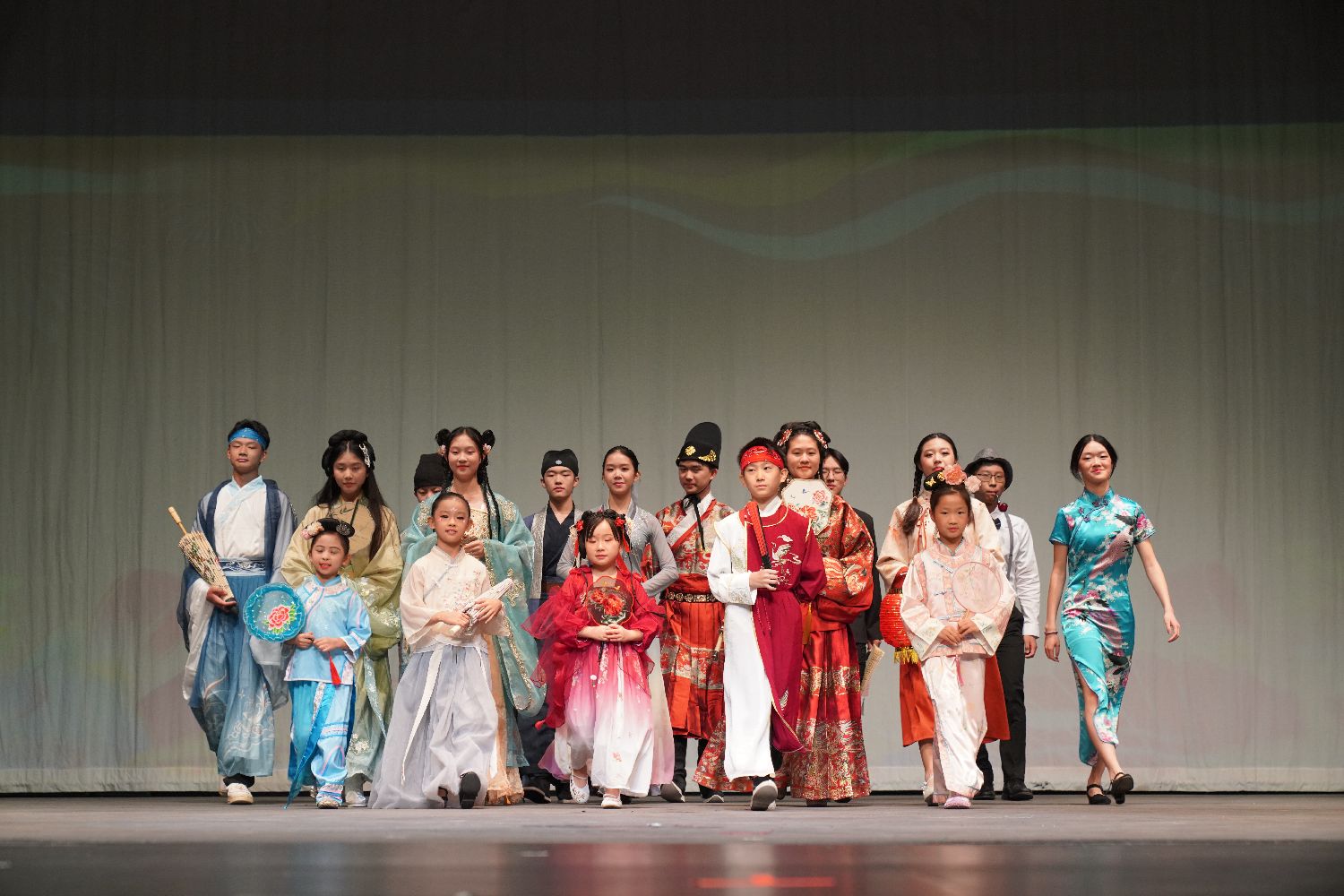 晚会以一场磅礴的中国服装秀拉开帷幕。孩子们身着不同朝代的华服款款走来。从秦汉的庄重到唐宋的华美,再到明清的精致,简直就是一场穿越千年的国风变装派对。所有的台步和动作都是青少年们自己设计的。导演赵媛爆料,刚开始这群小模特“互相嫌弃”。但谁能想到,几次排练后,他们不仅成了好朋友,还在后台玩起了最火的变装视频,自己给自己打call!