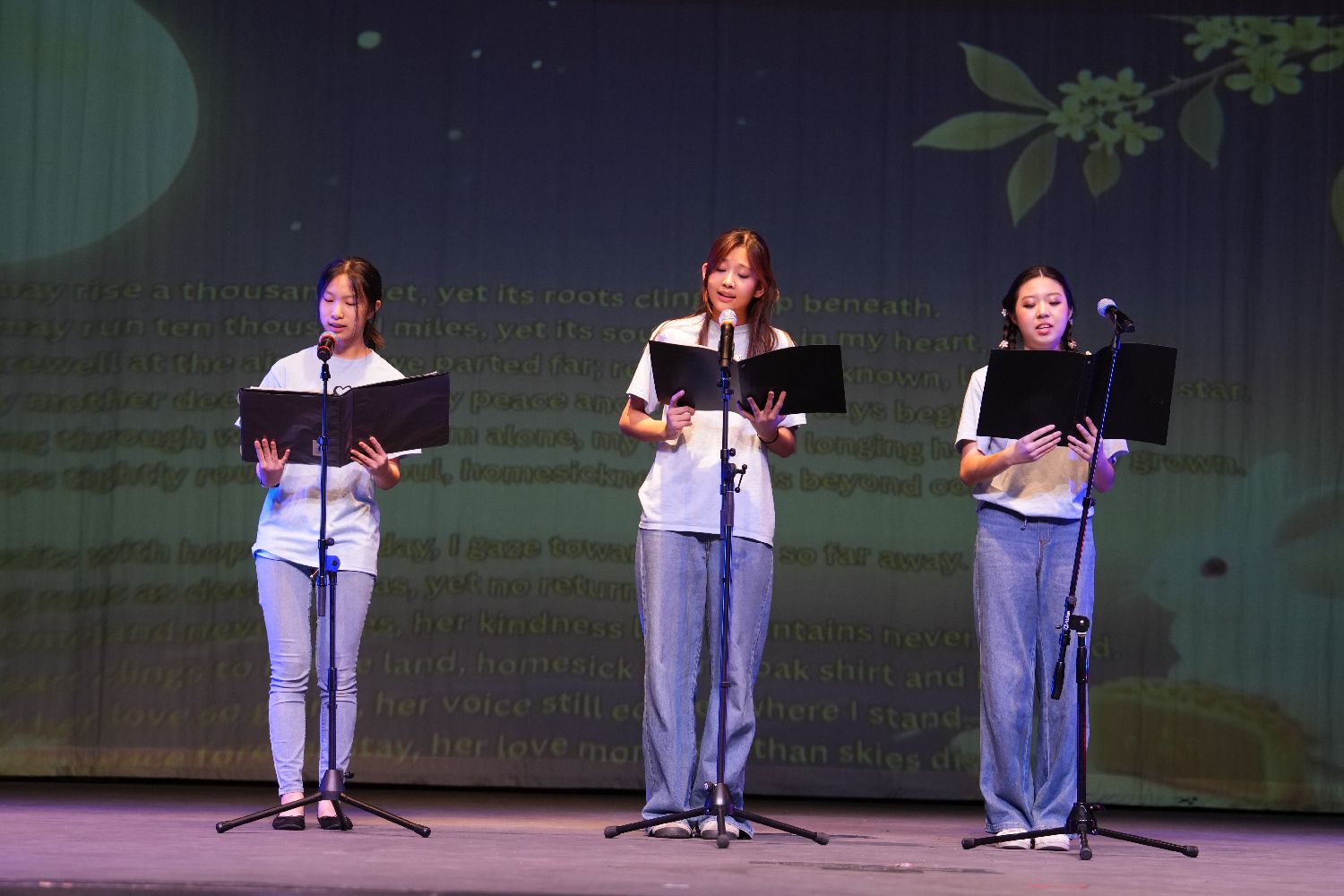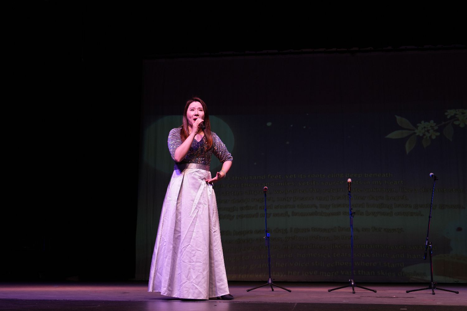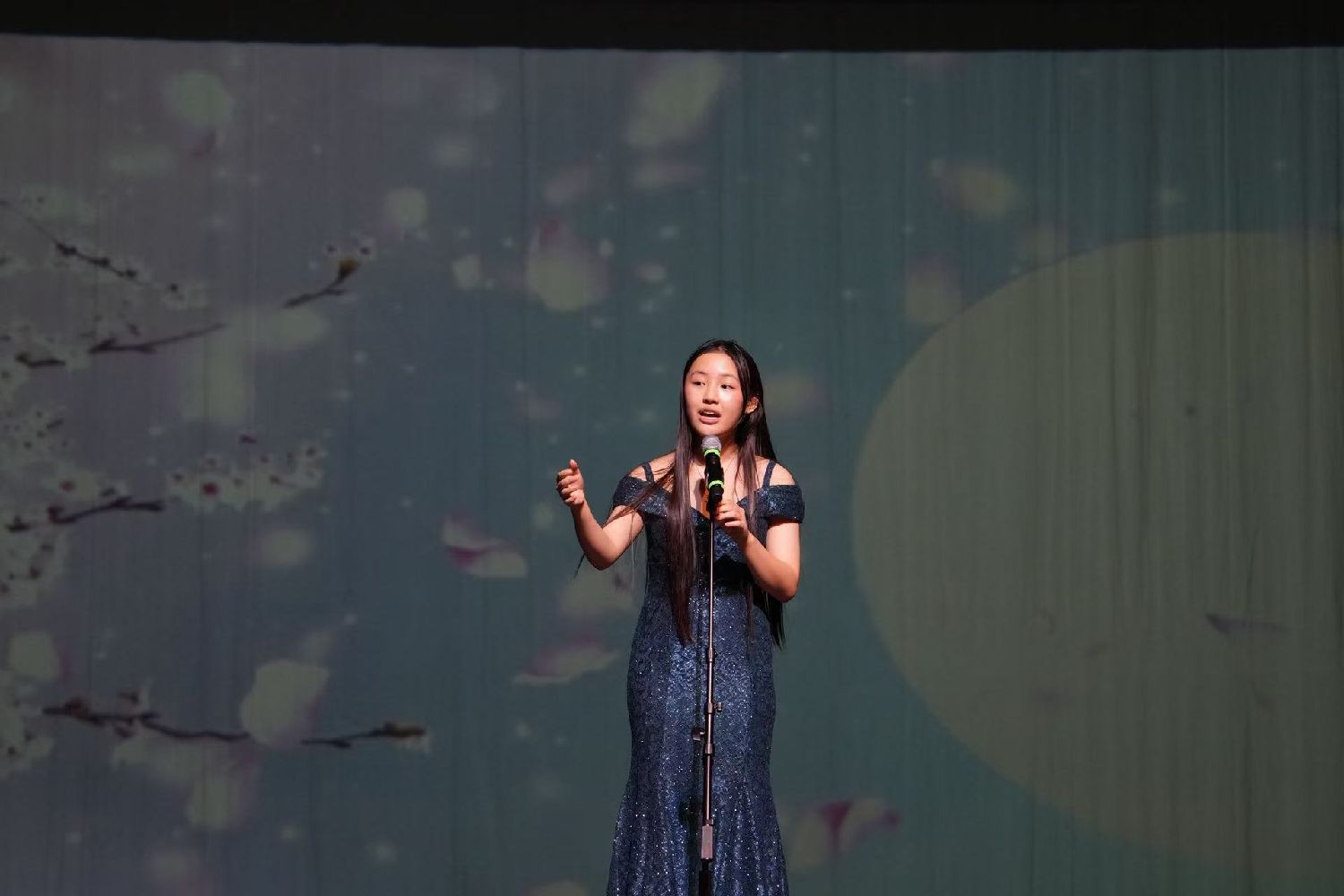 接下来,当三位青少年用真挚的嗓音朗诵起“树高千尺总有根”,这记乡愁暴击,让全场破防。Erin老师的歌声深情切入,那份深植于心的乡愁弥漫开来,深深打动了每一位海外游子。这首故乡谣,出自资深作家,地质学家胡昌明老师。演出后,胡老师亲自发来赞誉,对三位同学的深情朗诵,专业的编曲和专业的钢琴伴奏,特别是Erin老师专业水平的演唱给予了极高的评价。这已不只是表演,更是一场关于文化的动人传承。