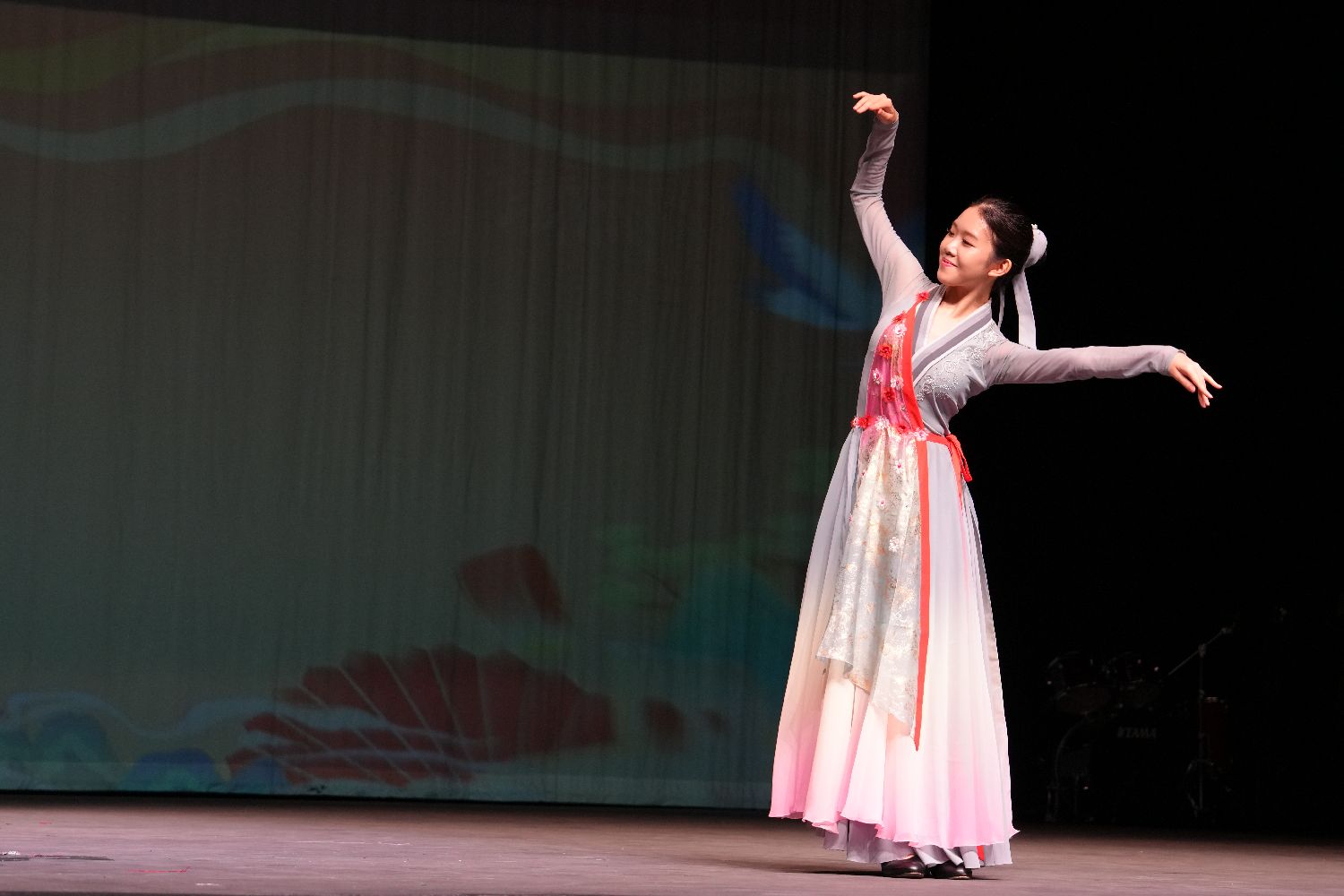 紧接着,桃李杯冠军Sabrina Zhao以独舞《A Flying Bird》惊艳四座,其高超的技巧和轻盈的舞姿,完美诠释了“翩若惊鸿,婉若游龙”,令人叹为观止。她和妹妹Sophia Zhao是我们社区优秀又有爱心的宝藏女孩。她们不仅舞技超绝,而且经常去老人院表演,用舞蹈传递快乐。