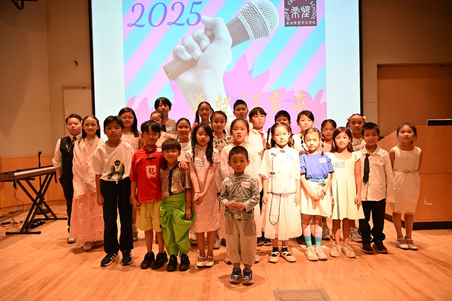这是亚省希望中文学校举办的2025希望好声音现场。小主持人赖麓飏以一曲优美的《大鱼》暖场,台风自信沉稳。他对歌手们的点评颇为直白,首首都是我喜欢,让人忍俊不禁。