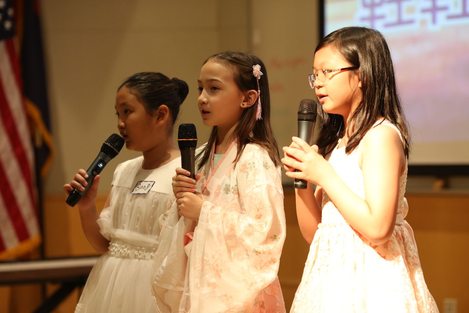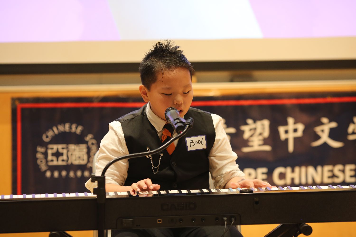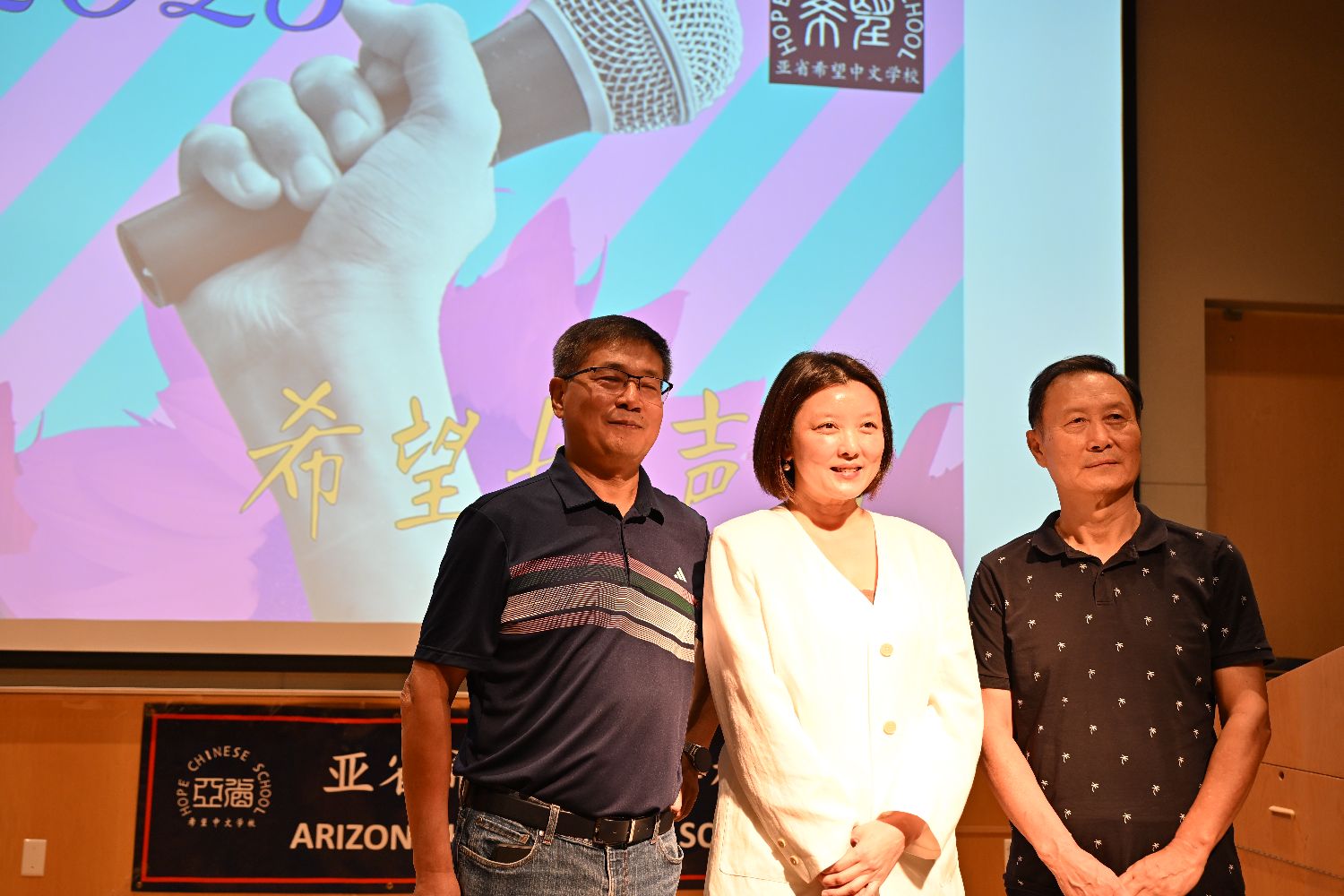 正如主持人徐雪涛老师亲切热情的介绍,我们有幸请来各位评委们。“刘洛宏老师,著名音乐人,本地合唱团的指导老师,多台大型晚会的总指导;崔春老师,毕业于厦门大学艺术学院音乐系声乐专业,既是出色的歌手,也是我们学校的热心家长;孙宏伟老师,曾担任学校董事长,资深义工,也是亚省著名歌手。”孙老师还提到,他也是从孩童起就喜欢唱歌,一直到今天。希望孩子们也能长期拥有这份热爱。多么朴实又美好的愿望!