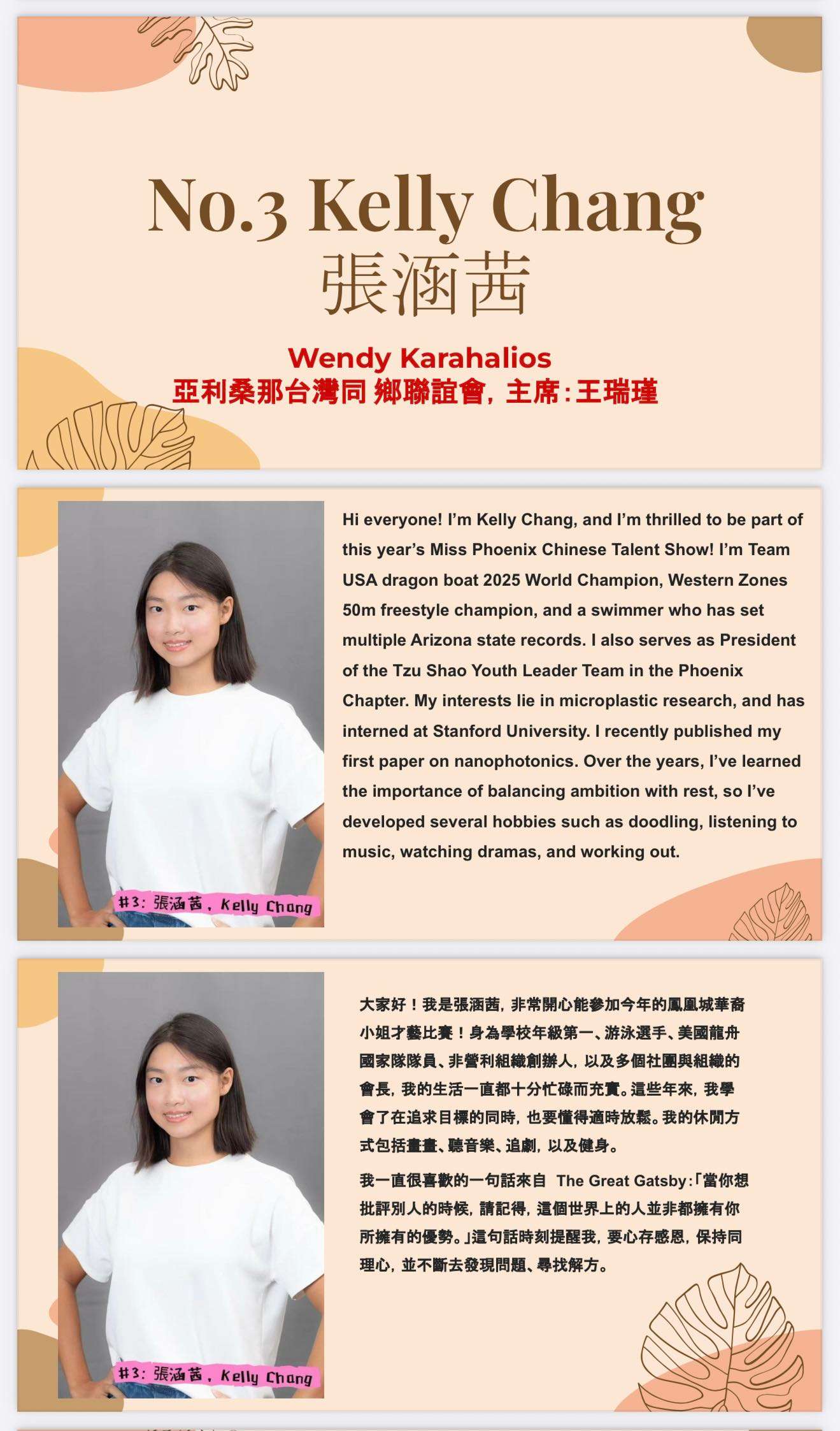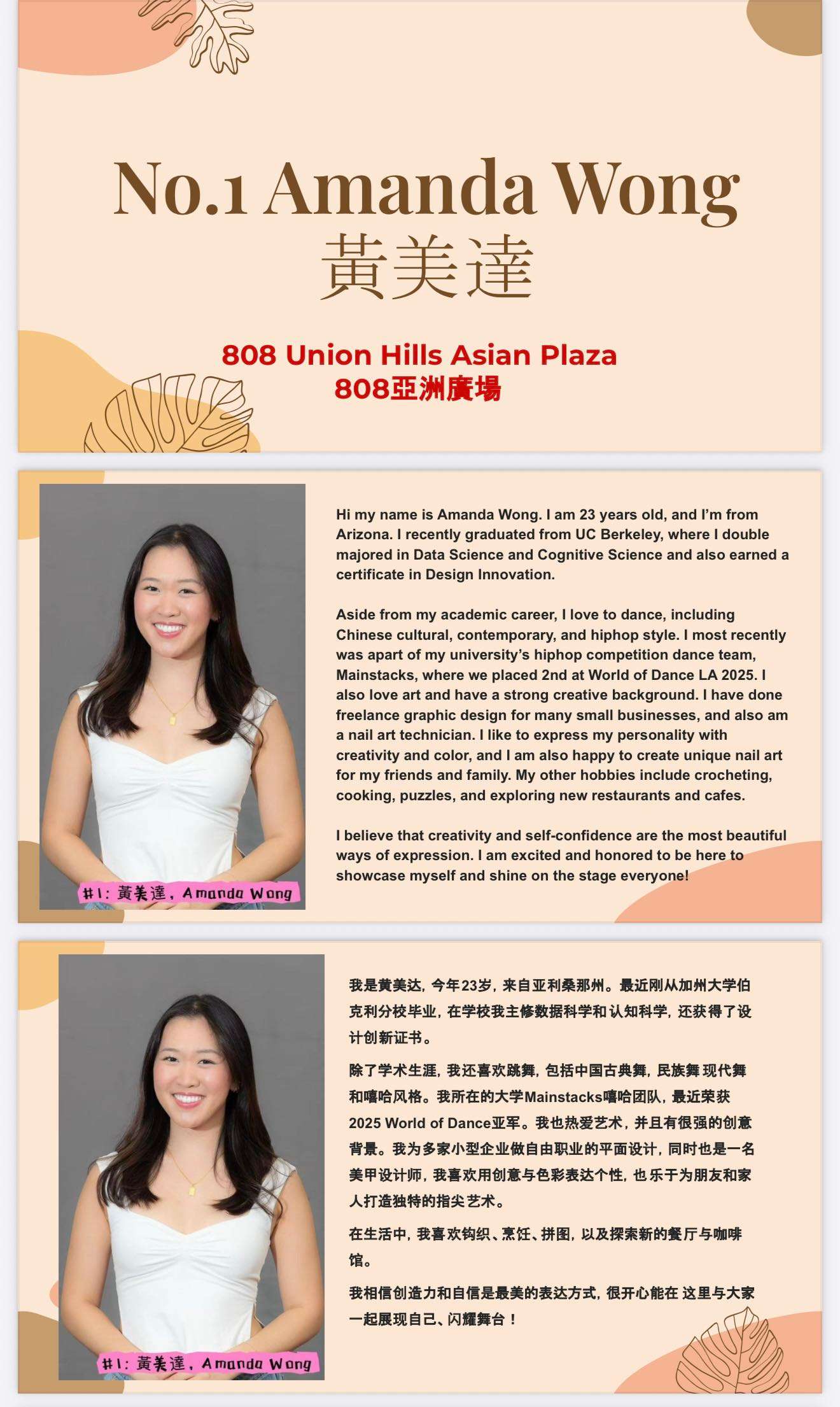 1) Miss Phoenix Chinese Culture Ambassador