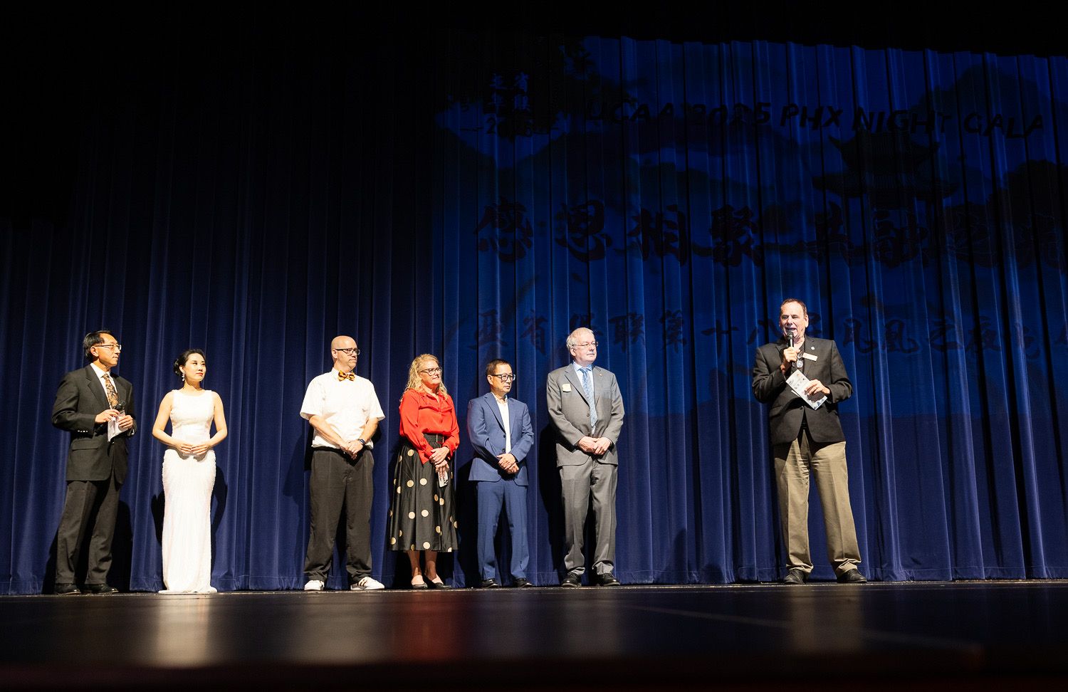 晚会特别设置了**“杰出青少年义工奖”与“第三届亚利桑那公立学校中文教师里程碑奖颁奖”**环节,以致敬长期为社区文化建设与青少年教育默默奉献的青年志愿者和中文教师。获奖学生在过去的数年中积极投身公益服务,在Salvation Army的义务教学、Girls Who Code技术公益项目以及 Red Cross红十字会志愿服务等多个组织中长期坚持奉献。他们不仅在社区舞台和活动现场贡献力量,更以实际行动走入社会、服务弱势群体、推广科技教育与公益文化,用善意与责任感诠释了新一代青年的力量与担当;而获得里程碑奖的中文教师们,则多年坚守在亚利桑那公立学校课堂,用专业、耐心与爱心推动中华语言文化教育,为无数学子打开通往世界的另一扇窗。他们所做的一切并非为了掌声,而是为了让文化传承与教育价值在下一代身上生根发芽。