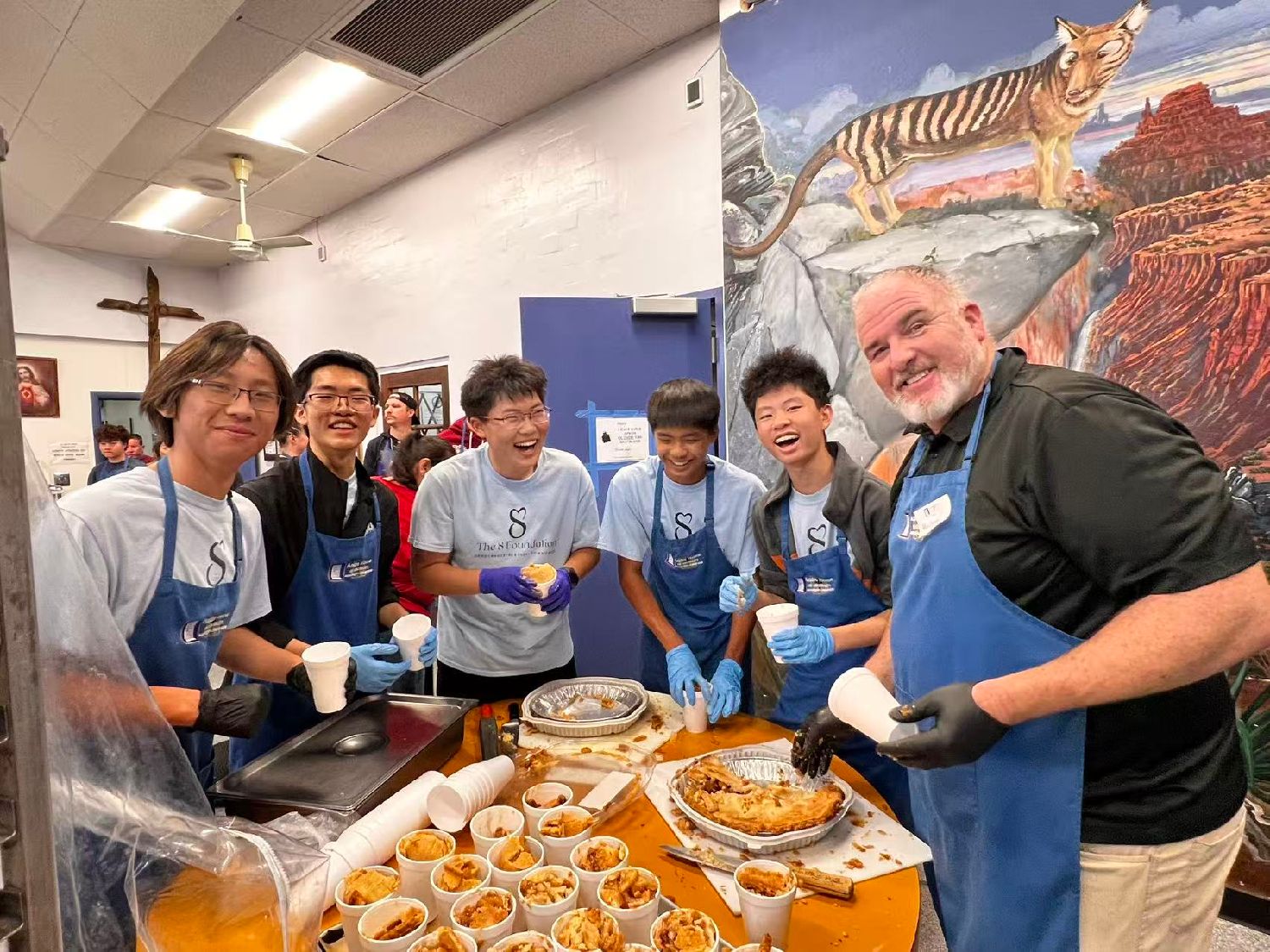 Andre House of Arizona,一个身处凤凰城市中心凌乱的街道上,却充满温情的地方。十五位工作人员,和许许多多的志愿者,每天忙碌地工作着,只为了能给附近的无家可归者,提供一餐热腾腾的饭食。The8Foundation的孩子和家长们,就是这众多志愿者中的一员。