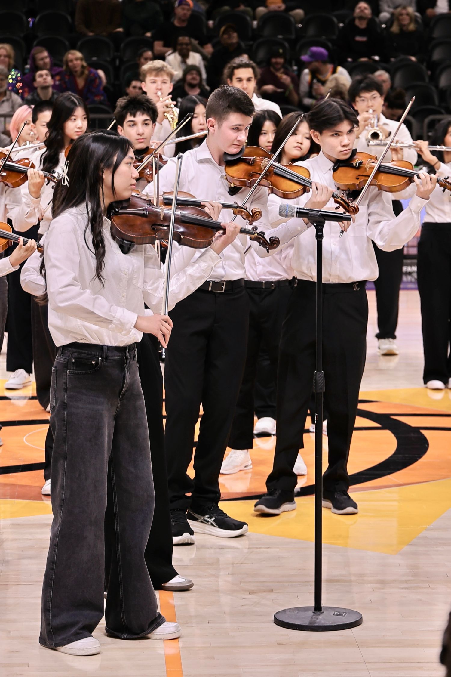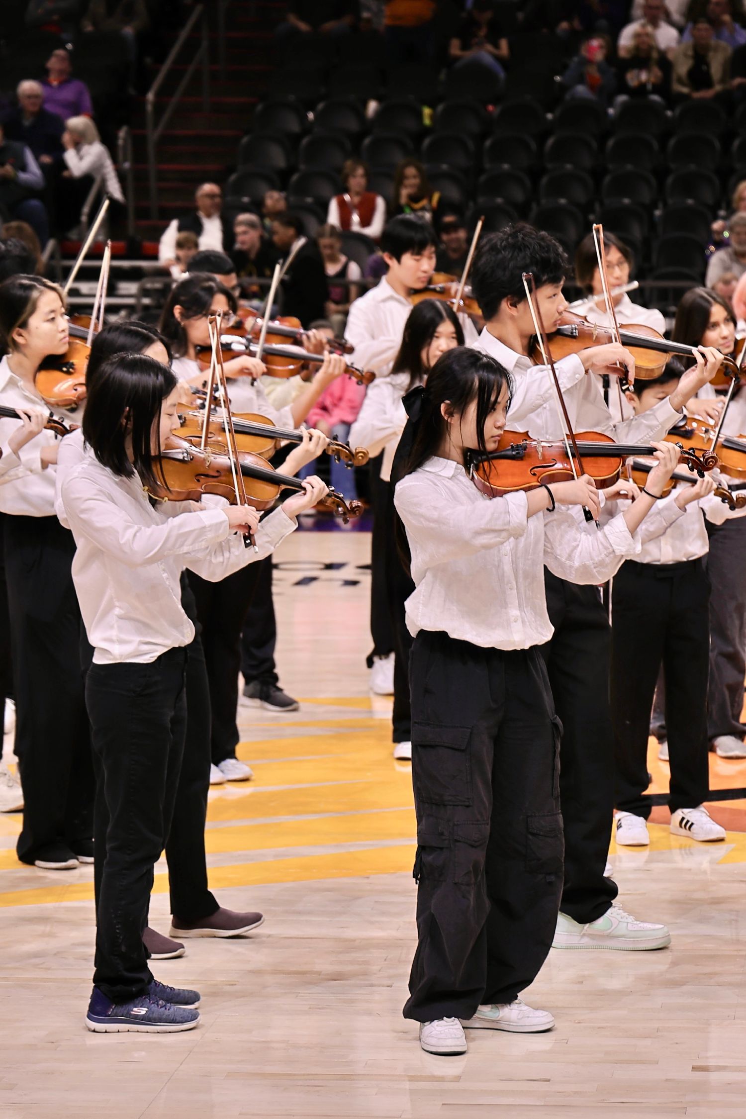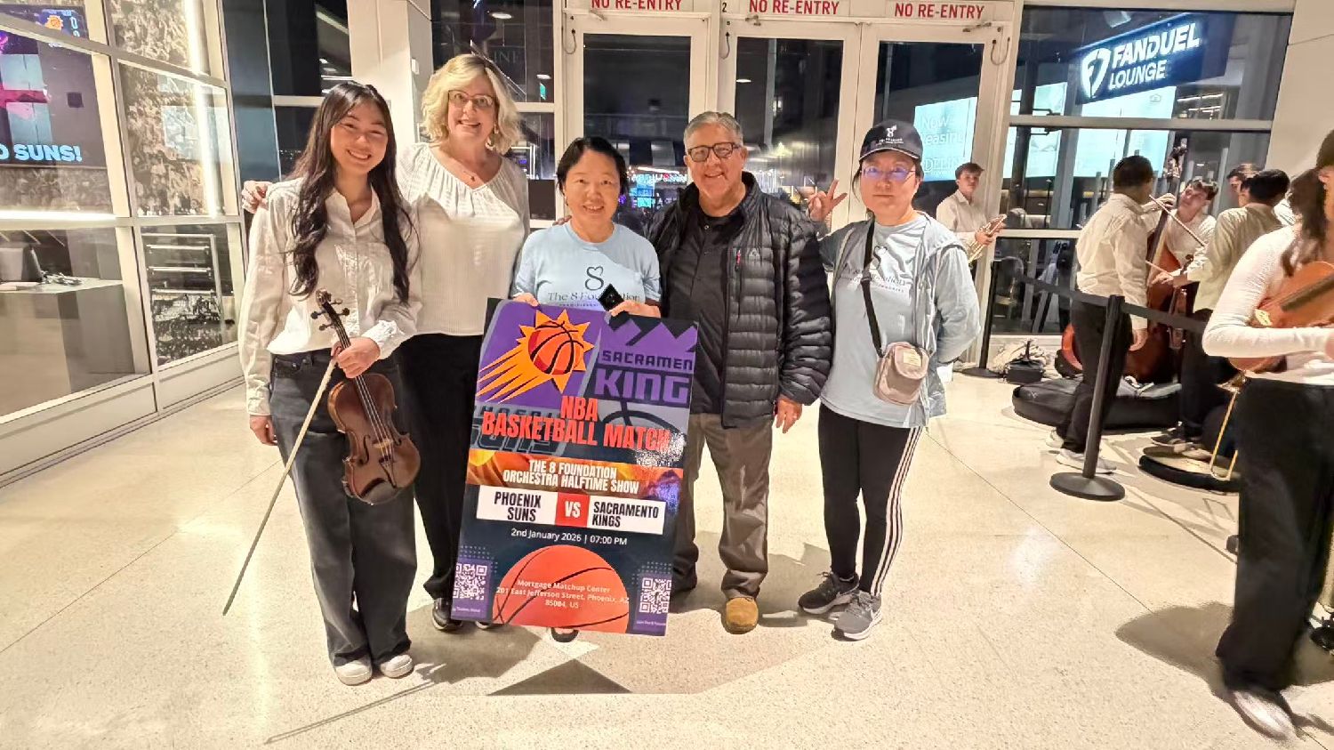 回望前期的筹备,这一路并非一帆风顺。团长夫妇和我为了孩子们能登上NBA的舞台,与官方进行了多轮沟通与谈判。NBA以往的中场秀多以舞蹈表演为主,而我们希望能为青少年古典乐队争取到一次机会。于是,无数封邮件往返讨论。最终,NBA看了我们此前在义工中秋颁奖晚会上演奏《卡门》的视频,也理解并认同了孩子们的2026新年愿望,敲板定音——8团成为第一个登上NBA中场秀舞台的青少年古典乐队,这是一次破天荒的特例。