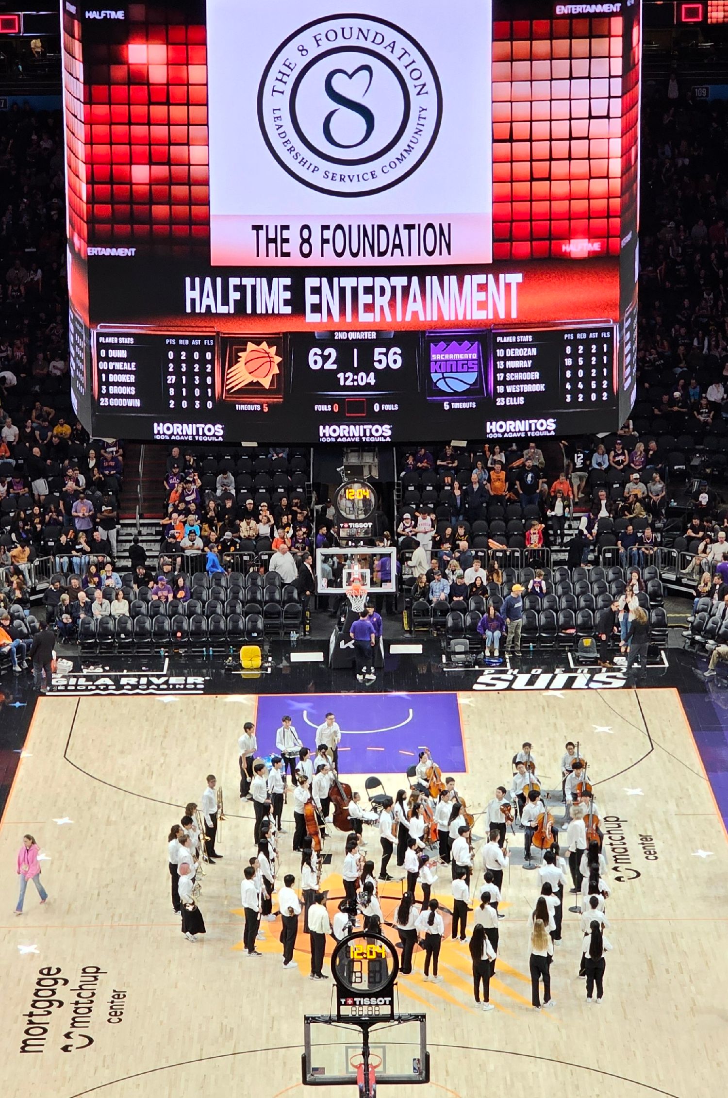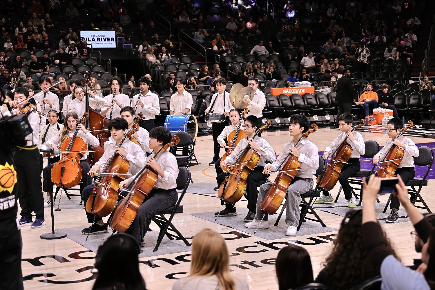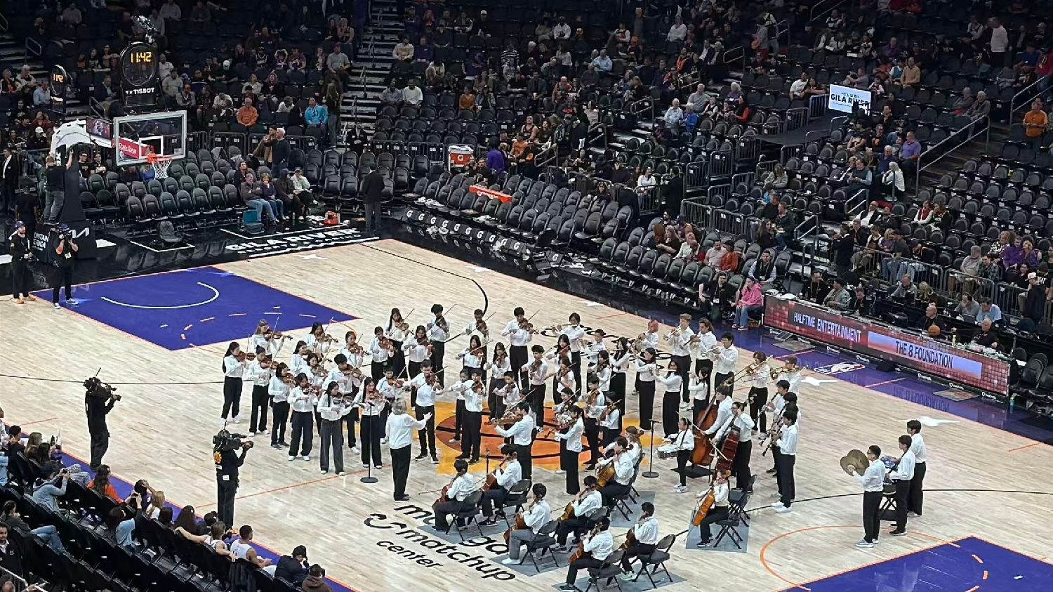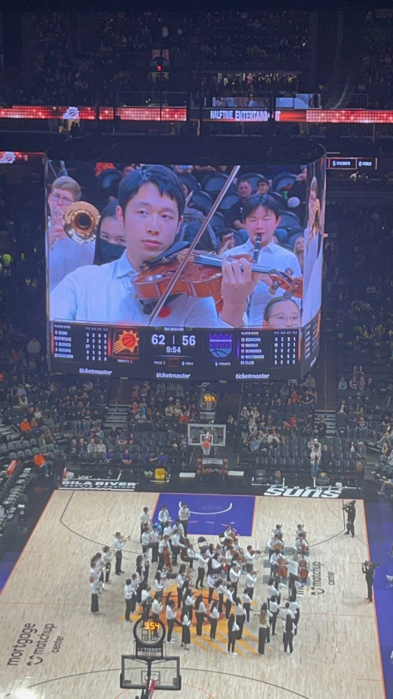 回望前期的筹备,这一路并非一帆风顺。团长夫妇和我为了孩子们能登上NBA的舞台,与官方进行了多轮沟通与谈判。NBA以往的中场秀多以舞蹈表演为主,而我们希望能为青少年古典乐队争取到一次机会。于是,无数封邮件往返讨论。最终,NBA看了我们此前在义工中秋颁奖晚会上演奏《卡门》的视频,也理解并认同了孩子们的2026新年愿望,敲板定音——8团成为第一个登上NBA中场秀舞台的青少年古典乐队,这是一次破天荒的特例。