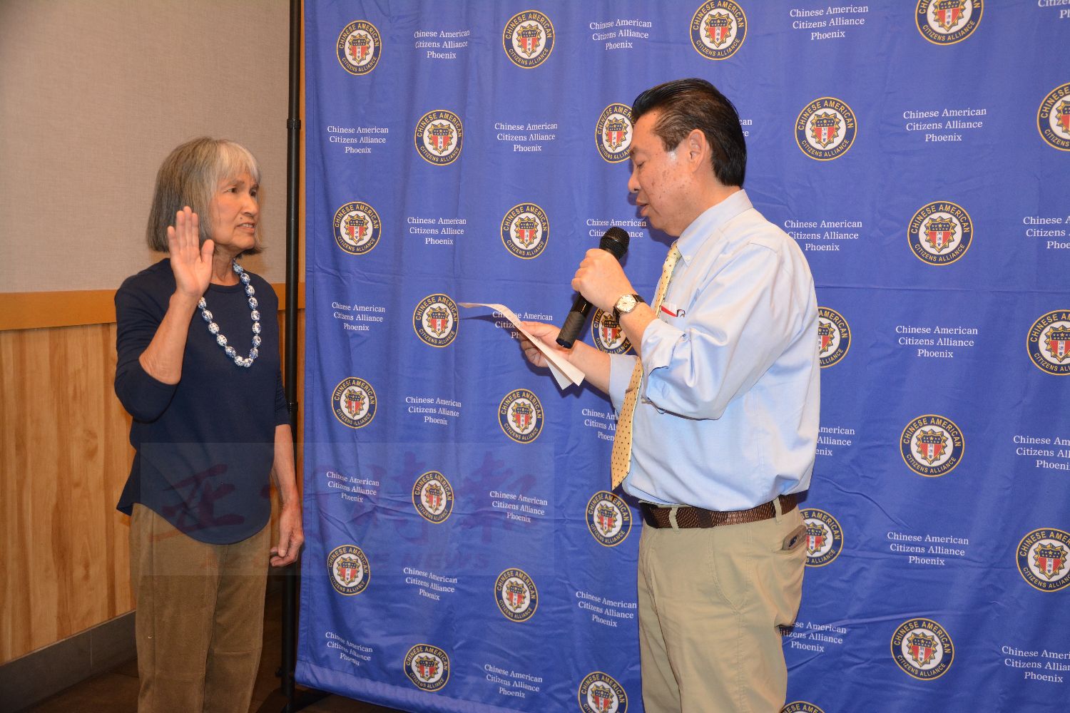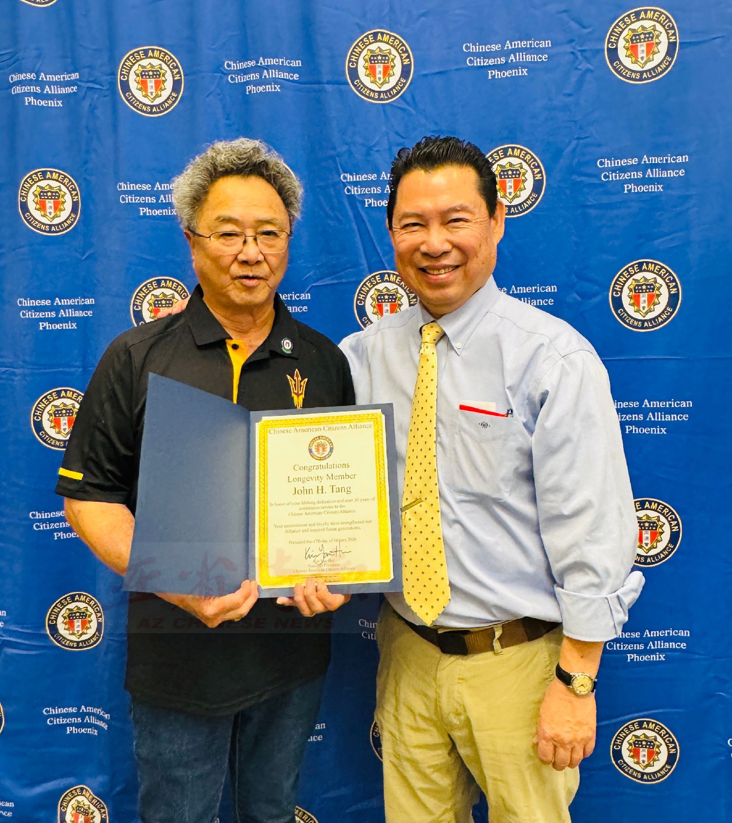 【本报讯】记者阿鸣摄影报道:美洲同源会(Chinese American Citizens Alliance,简称 C.A.C.A.)总会会长许健仁(Kin Yan Hui)近日专程自德州圣安东尼奥到访凤凰城,并于1月17日晚在太平洋布斐为凤凰城同源会分会新当选的2026年职员主持隆重的就职仪式。凤凰城分会新任会长Donna Woo-Quintana亦共同协助完成宣誓与授证程序,现场气氛庄重而温馨。