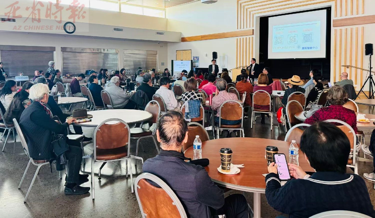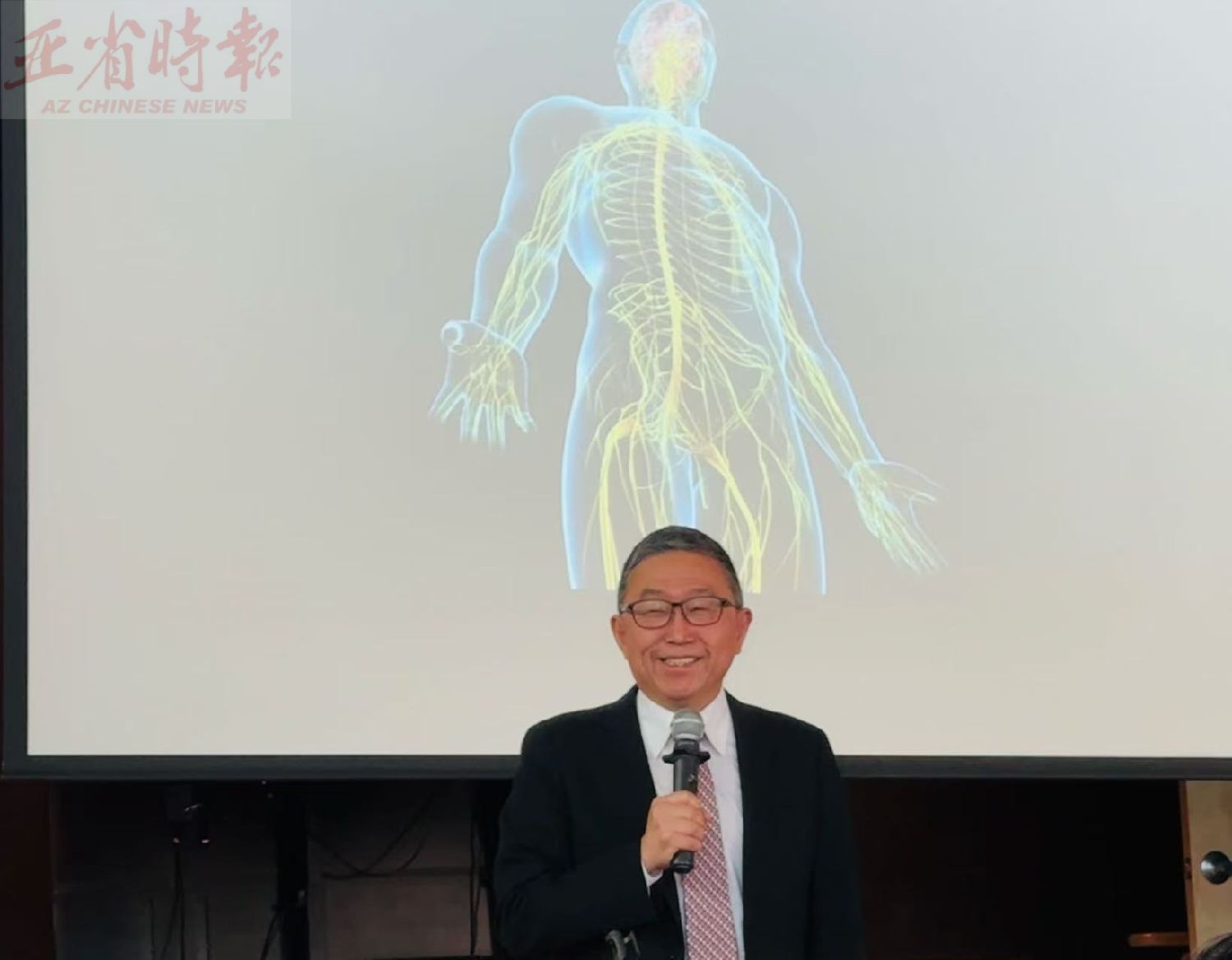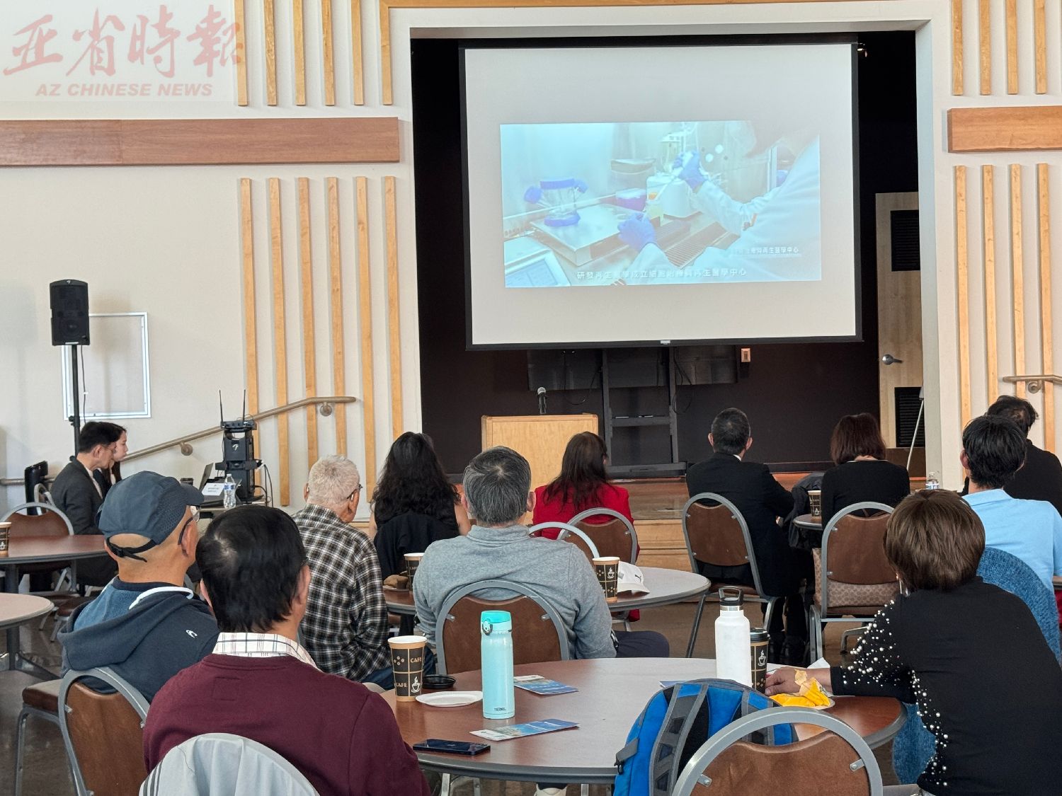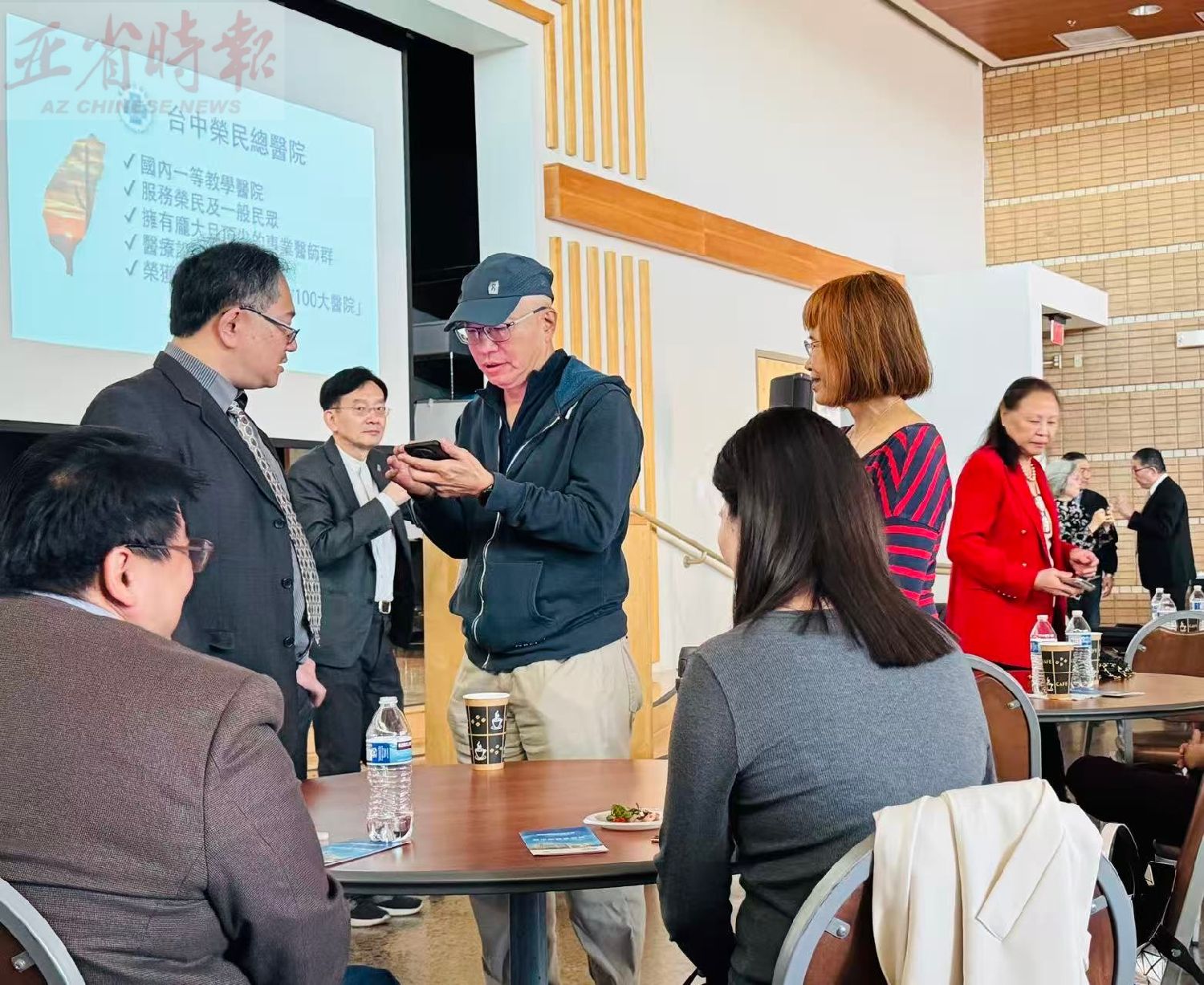 【本報訊】李真報道,阿鳴攝影:為促進台美社區對現代醫療與預防醫學的認識,台中榮民總醫院副院長周元華博士近日率醫療團隊赴美,與鳳凰城台美商會、榮光聯誼會於上週六共同舉辦專題健康講座。榮光會會長王瑞瑾,總幹事陳彩屏等一早親自佈置會場,接送各位醫師,親力親為。講座由台美商會副會長鄭弘主持,活動吸引許多僑胞與專業人士參與,現場反應熱烈。