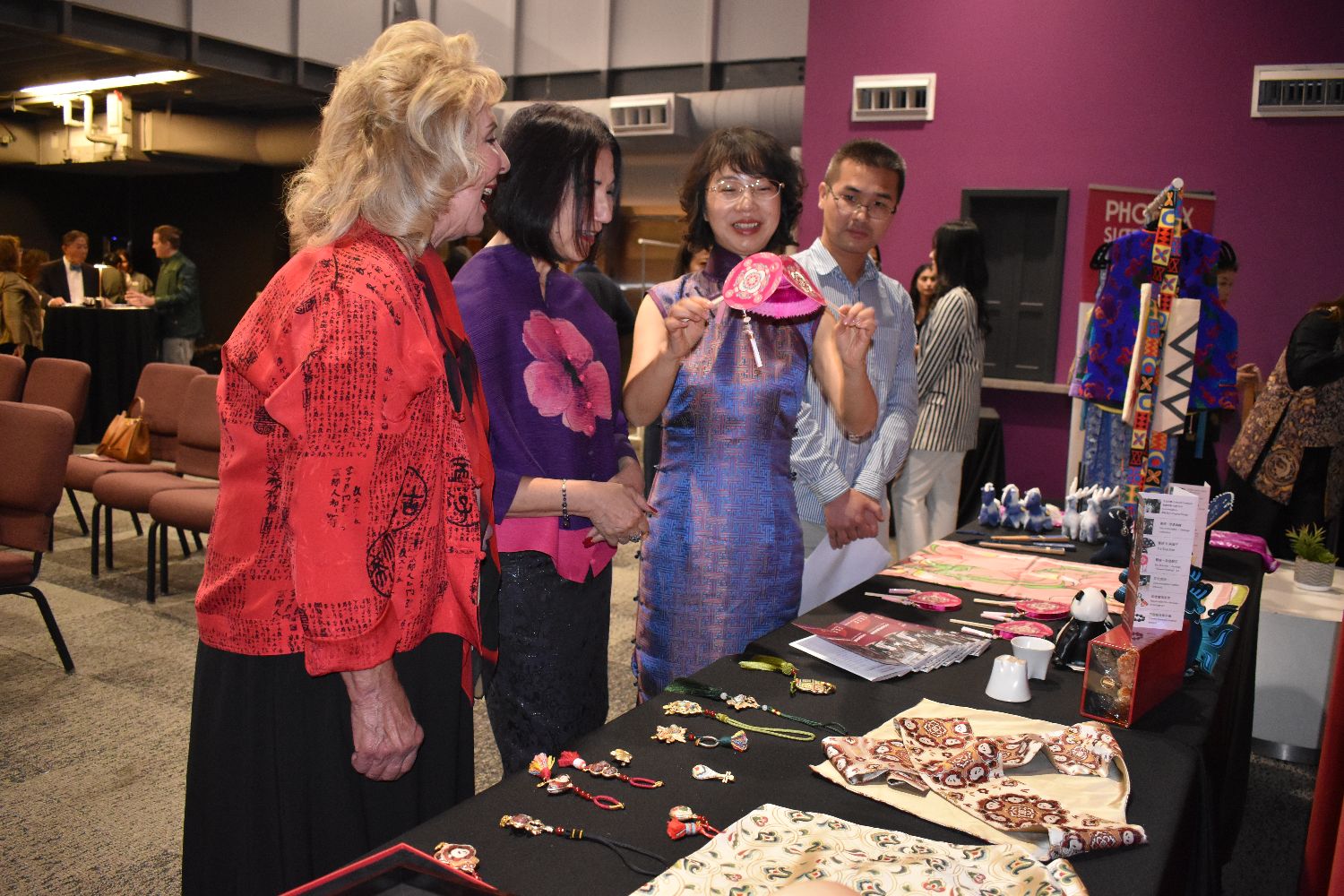 应凤凰城成都姐妹市委员会与中国周组委会邀请,中国西部高级定制中心团队专程从成都远赴凤凰城,她们分别是中国西部高级定制中心国际合作部主任江一帆女士、成都市金牛区投资促进中心主任张庆女士、成都市金牛区委副书记王喜梅女士、中国西部高级定制中心设计师郭向宇女士,她们此行目的是参加中国周为期两天的展销与推广活动。