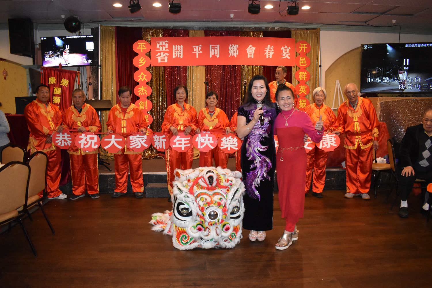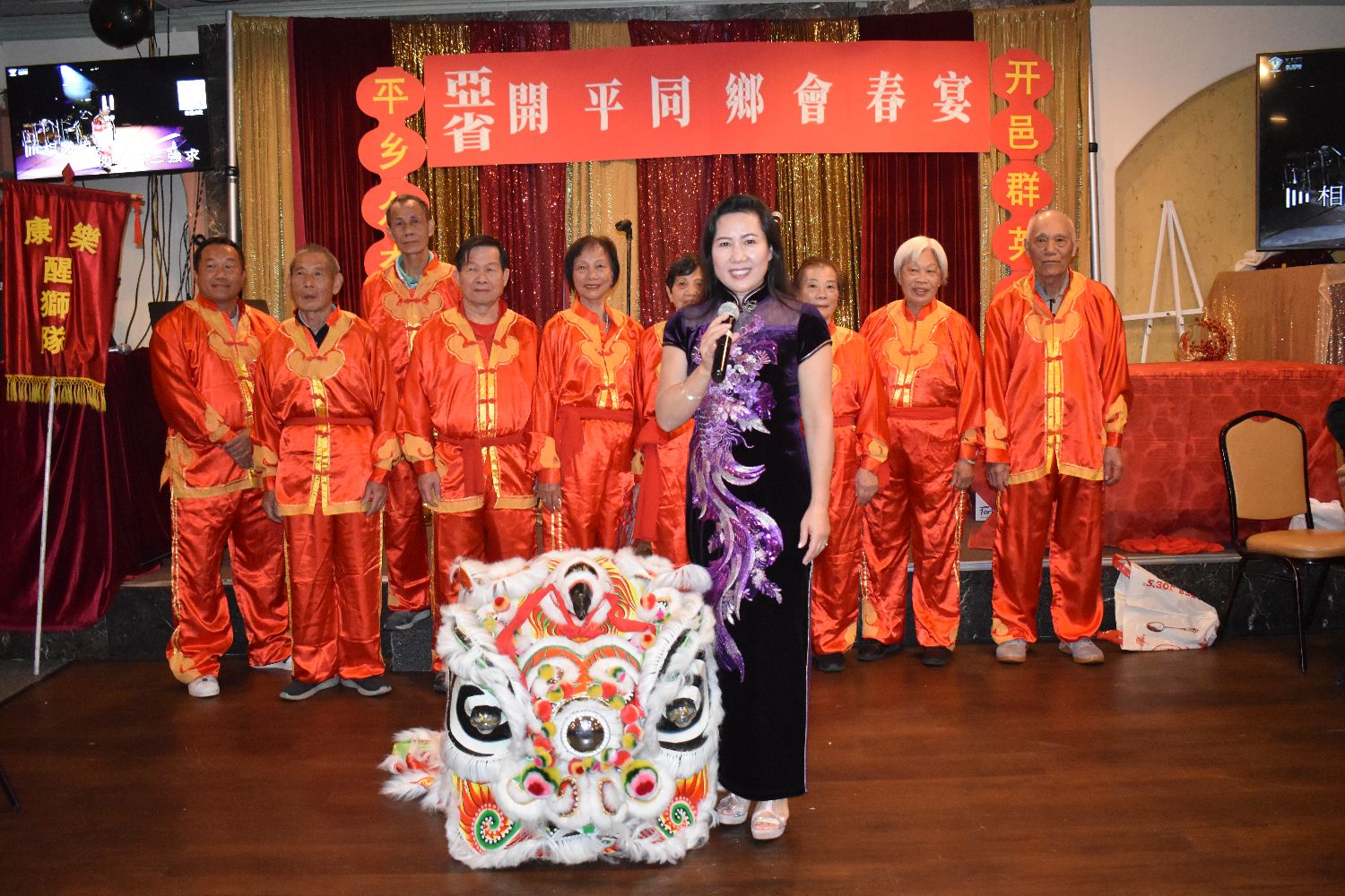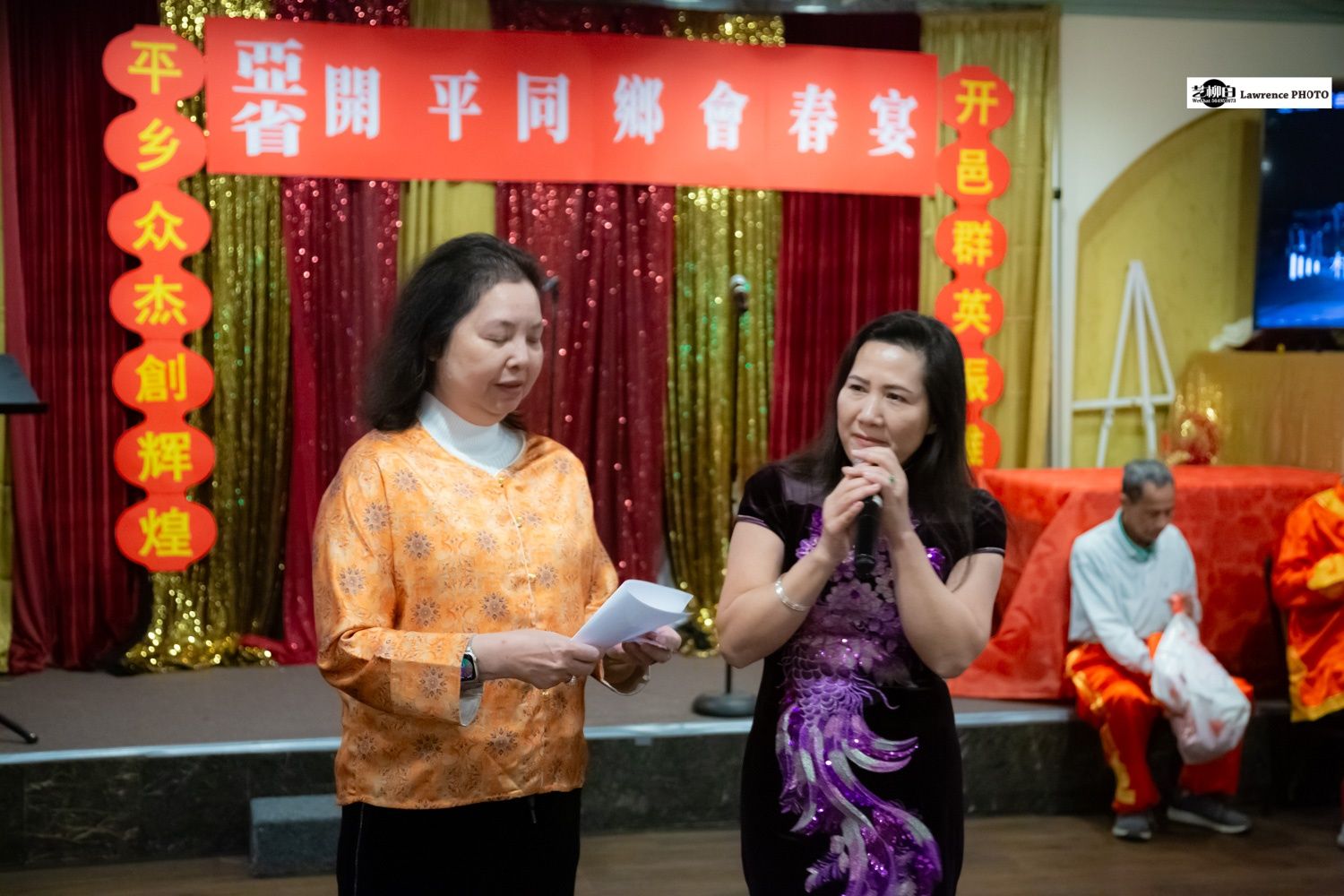活动由凤凰来仪会创会会长Cathy Hum担任主持人,她风趣幽默的主持风格令现场笑声不断,气氛轻松融洽。侨联总会主席张华芳在讲话中深情分享了她与开平的深厚情缘,讲述多年来的乡情纽带,感动不少乡亲。会长关兆锋随后致辞,感谢各位乡亲、侨团及嘉宾的支持,并祝福大家新一年身体健康、事业兴旺。副会长甄凯婴则逐一介绍到场贵宾,礼数周到。