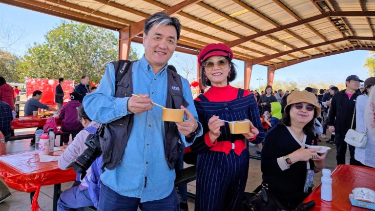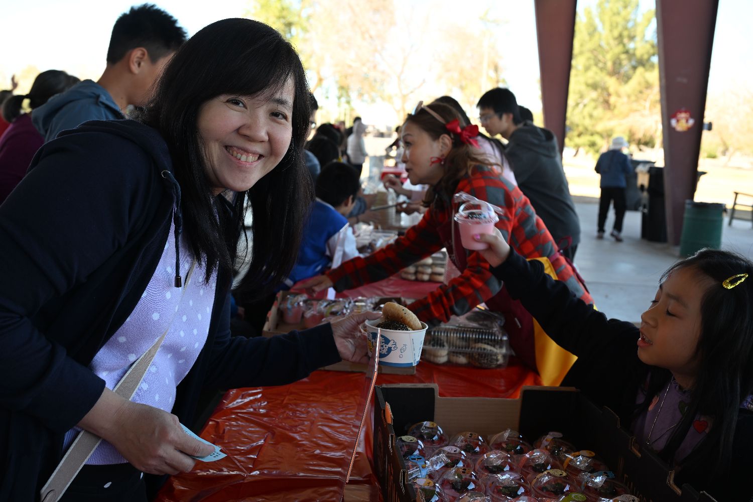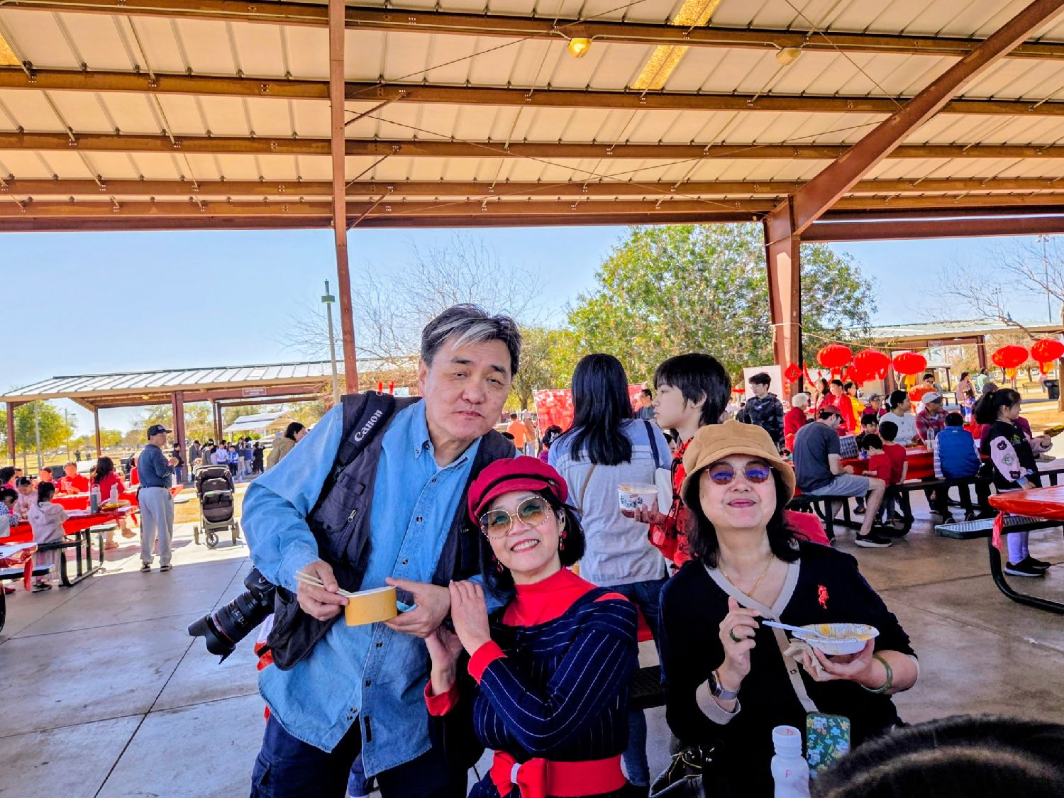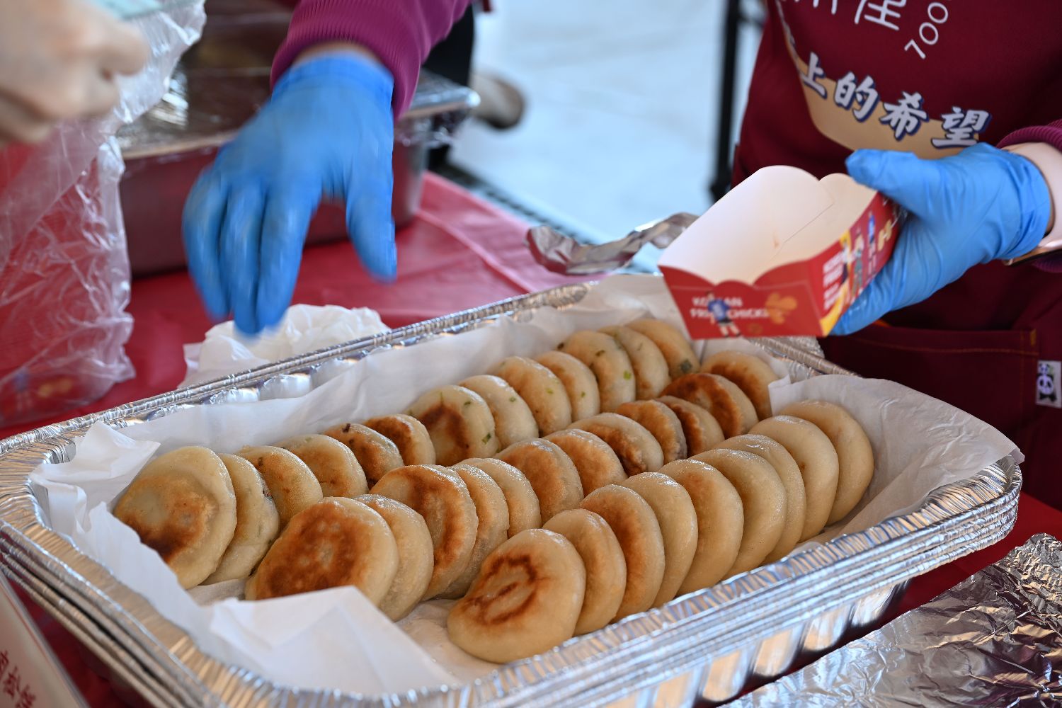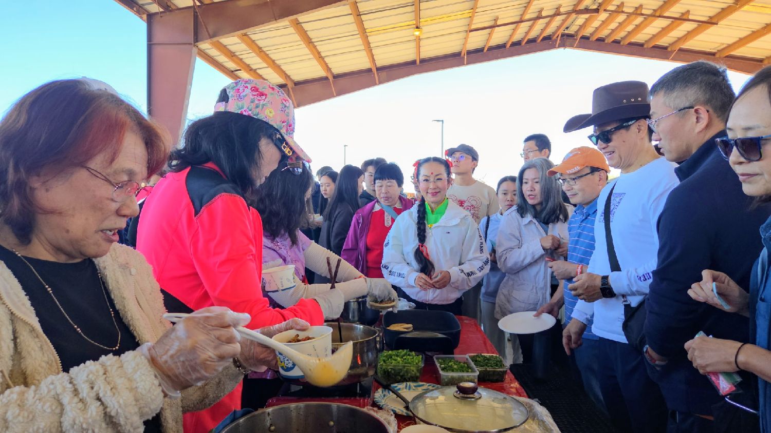 赫赫有名的包子陈和夫人亚莉一起,在总统日那天做了一整天的包子,还不够;此后每天下了班就做包子冻上,一直到庙会前夕。前校长田琳不仅请了许多老友出山,自己也是亲自上阵。前晚忙着改刀春卷皮,当日守着煎饼摊连轴转。行政校长Emily切葱切了一上午,手上都起了水泡。还有喷香的肉夹馍,都得提前一个个烙好,彩红校长和队友们为此忙活许久。庙会前夜正是不眠夜,灯火处,多少义工们准备食材到凌晨。这样的事例不胜枚举,种种辛劳不言而喻。尽管如此,大家认为这样值得。散场之后,义工们才有空填填肚子,聚在摊前笑谈温馨时刻:人们在排队中如何与大厨话家常,不少人又如何旁敲侧击求菜谱,可见味美啊。前校长田琳就说:“看到孩子们玩得开心,家长们吃得满意,所有的付出感觉都是很值得的。十几年前学校开始办庙会的初衷就是希望在美国出生长大的孩子们能够通过这样的集体活动感受到中国春节的热闹和喜庆。”
