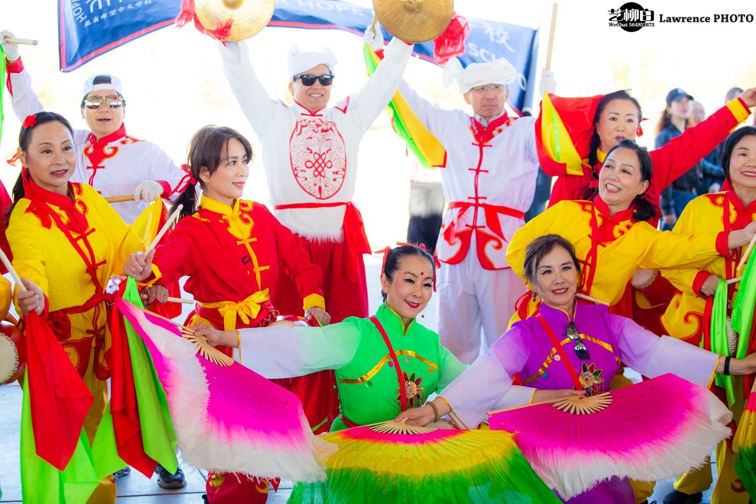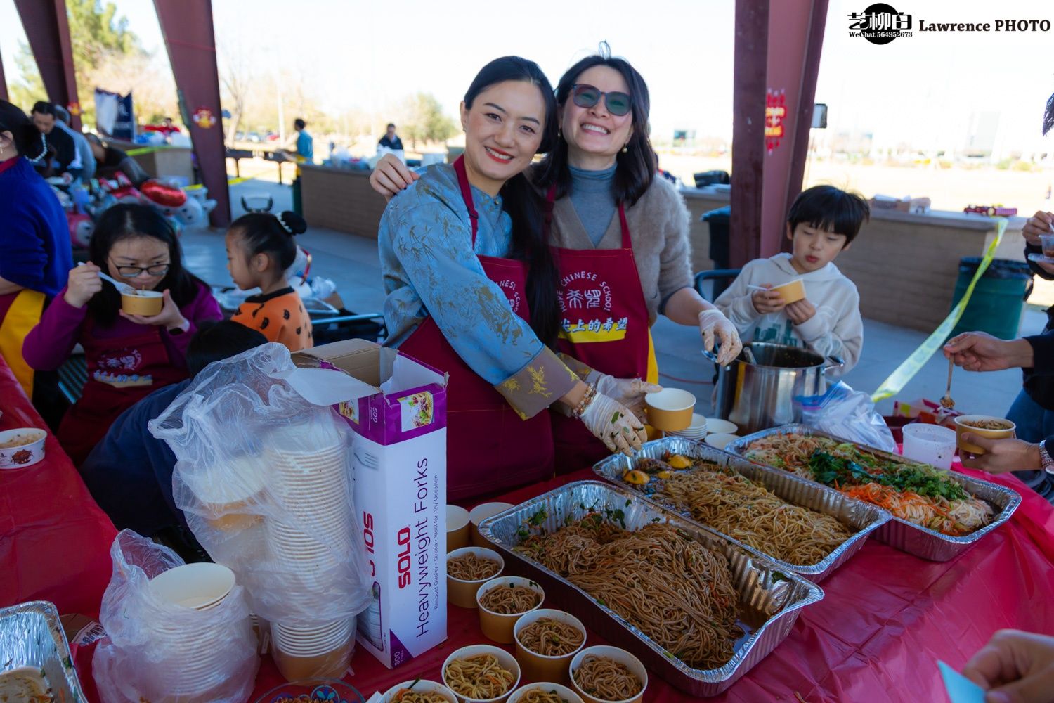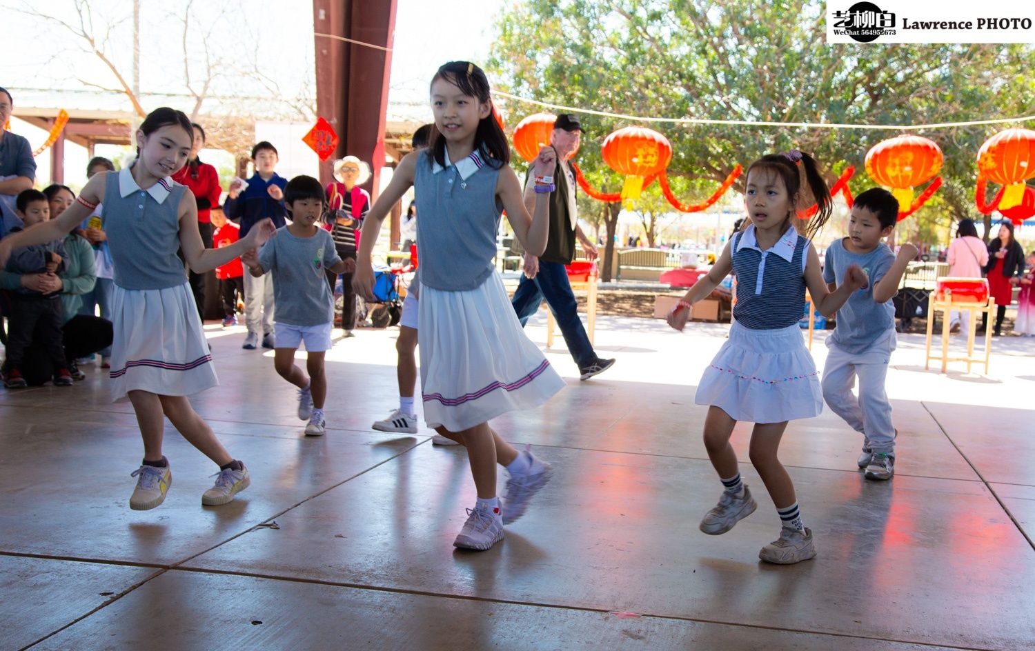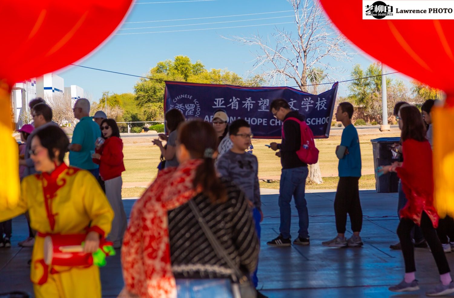 销魂饱腹,当此际!喧天的鼓声让人精神一振。英姿飒爽,彩扇飞舞,原来是腰鼓队的开场。紧接着,孩子们的Soda Pop,朝气蓬勃,老师们的拉丁舞,热情奔放,多姿多彩的才艺秀让人目不暇接。中午,主持人徐雪涛老师首先向大家拜了年。随后李健董事长在讲话中,盛赞了庙会的总指挥史敬嵬。我们的嘉宾CGCC校长CJ Wurster致辞中高度评价与希望中文学校长达十年的合作伙伴关系,並期待今后的长期合作发展。亚省地产赵鹏辉先生作为众多赞助本次庙会的机构与个人之一也致了辞。这场新春庙会非常荣幸地获得了广大社区的支持,包括AZ Community Foundation、AZ方太厨电、极光财富、赵鹏辉先生、舒之味、Top One Hot Top Asian Cuisine、南北小厨、Linda女士等等。接下来,自然是孩子们最开心的时刻。小朋友们欢蹦乱跳地排着长龙领红包,也领上一份新春的祝福。最后的压轴戏是新年福运大抽奖。咱们幸运的义工们,还穿着围裙呢,乐滋滋地上前领奖,全场笑声掌声阵阵,同喜同乐。
