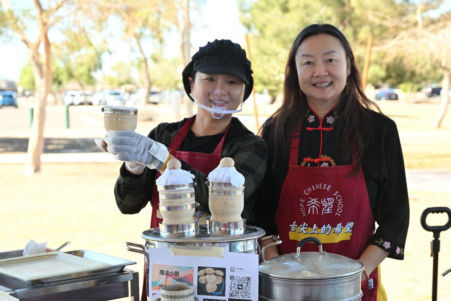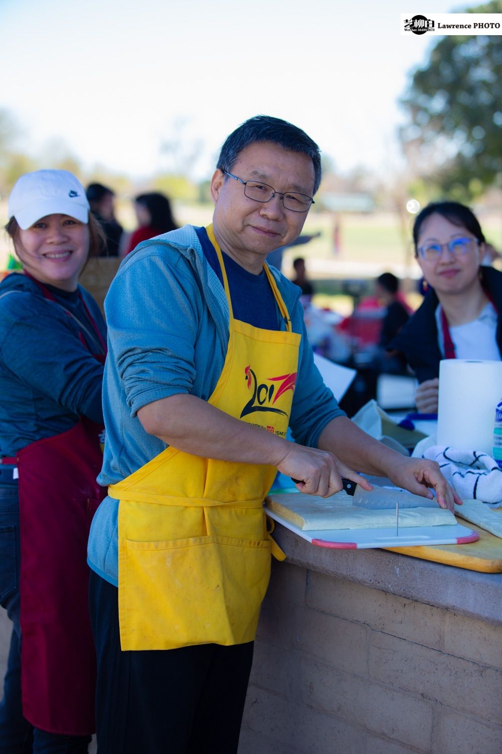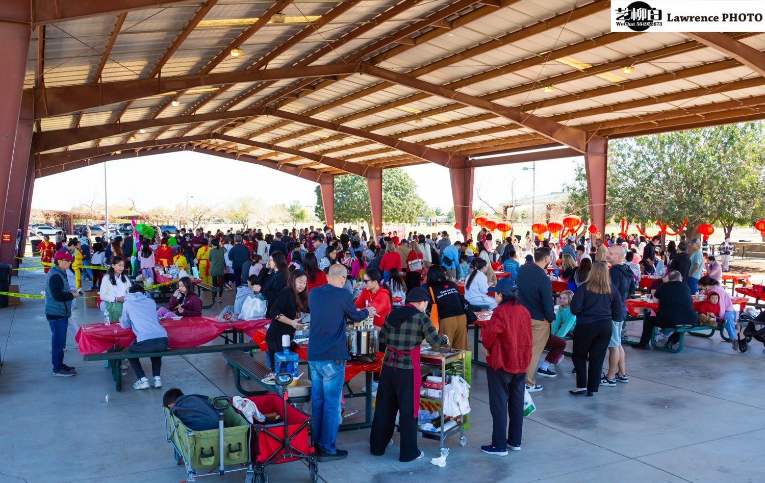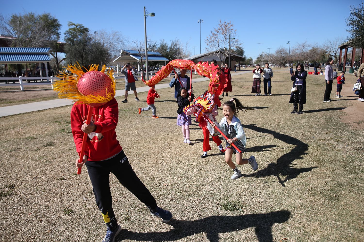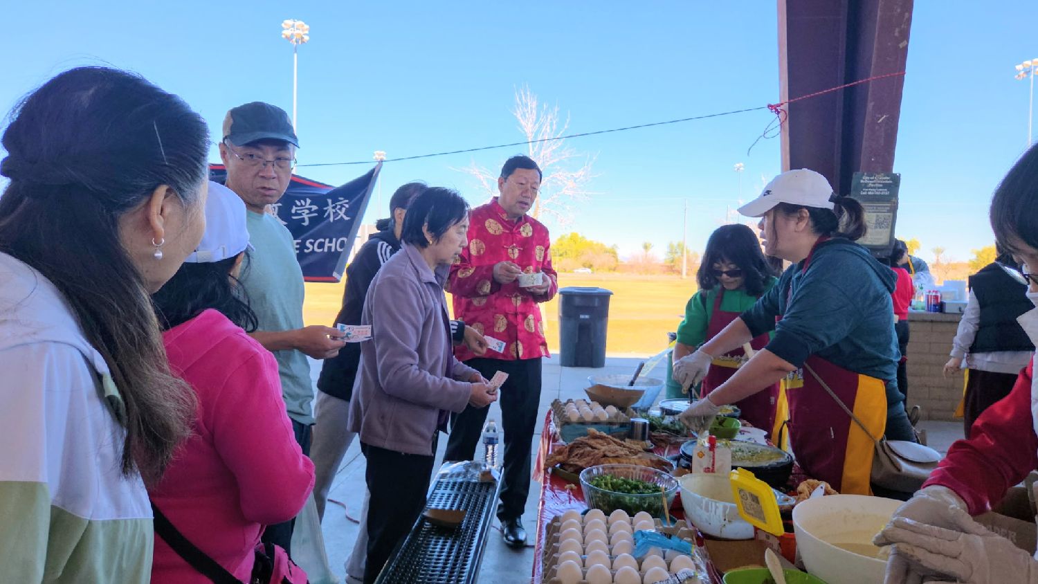 销魂饱腹,当此际!喧天的鼓声让人精神一振。英姿飒爽,彩扇飞舞,原来是腰鼓队的开场。紧接着,孩子们的Soda Pop,朝气蓬勃,老师们的拉丁舞,热情奔放,多姿多彩的才艺秀让人目不暇接。中午,主持人徐雪涛老师首先向大家拜了年。随后李健董事长在讲话中,盛赞了庙会的总指挥史敬嵬。我们的嘉宾CGCC校长CJ Wurster致辞中高度评价与希望中文学校长达十年的合作伙伴关系,並期待今后的长期合作发展。亚省地产赵鹏辉先生作为众多赞助本次庙会的机构与个人之一也致了辞。这场新春庙会非常荣幸地获得了广大社区的支持,包括AZ Community Foundation、AZ方太厨电、极光财富、赵鹏辉先生、舒之味、Top One Hot Top Asian Cuisine、南北小厨、Linda女士等等。接下来,自然是孩子们最开心的时刻。小朋友们欢蹦乱跳地排着长龙领红包,也领上一份新春的祝福。最后的压轴戏是新年福运大抽奖。咱们幸运的义工们,还穿着围裙呢,乐滋滋地上前领奖,全场笑声掌声阵阵,同喜同乐。