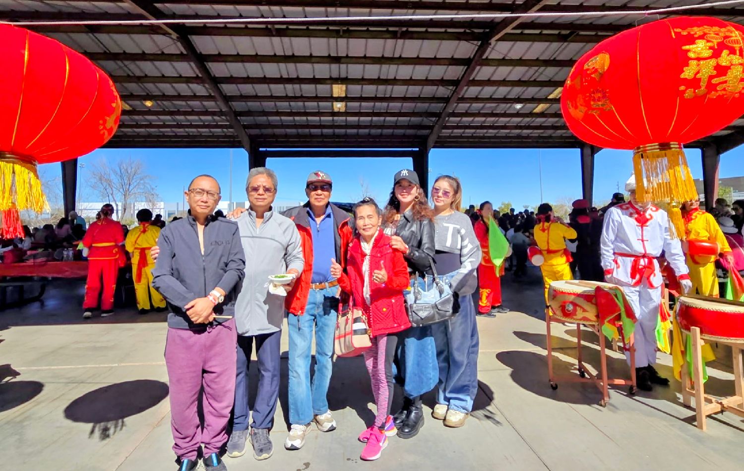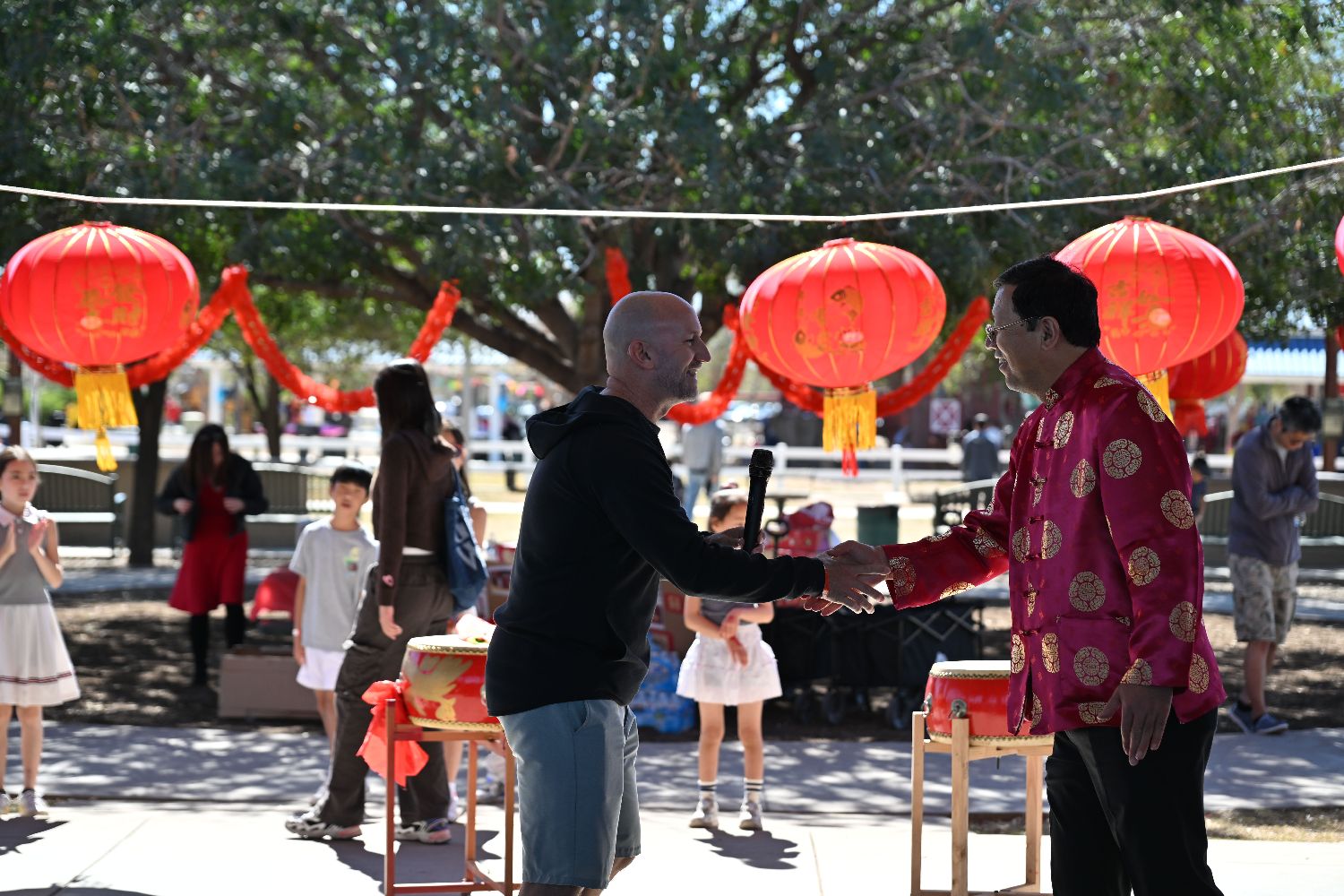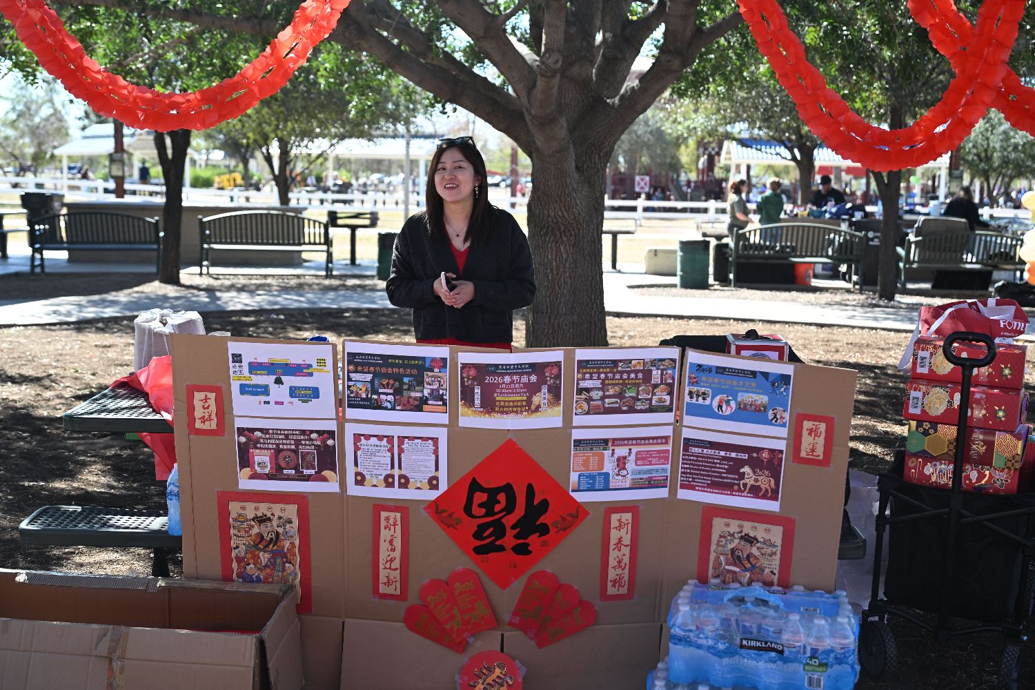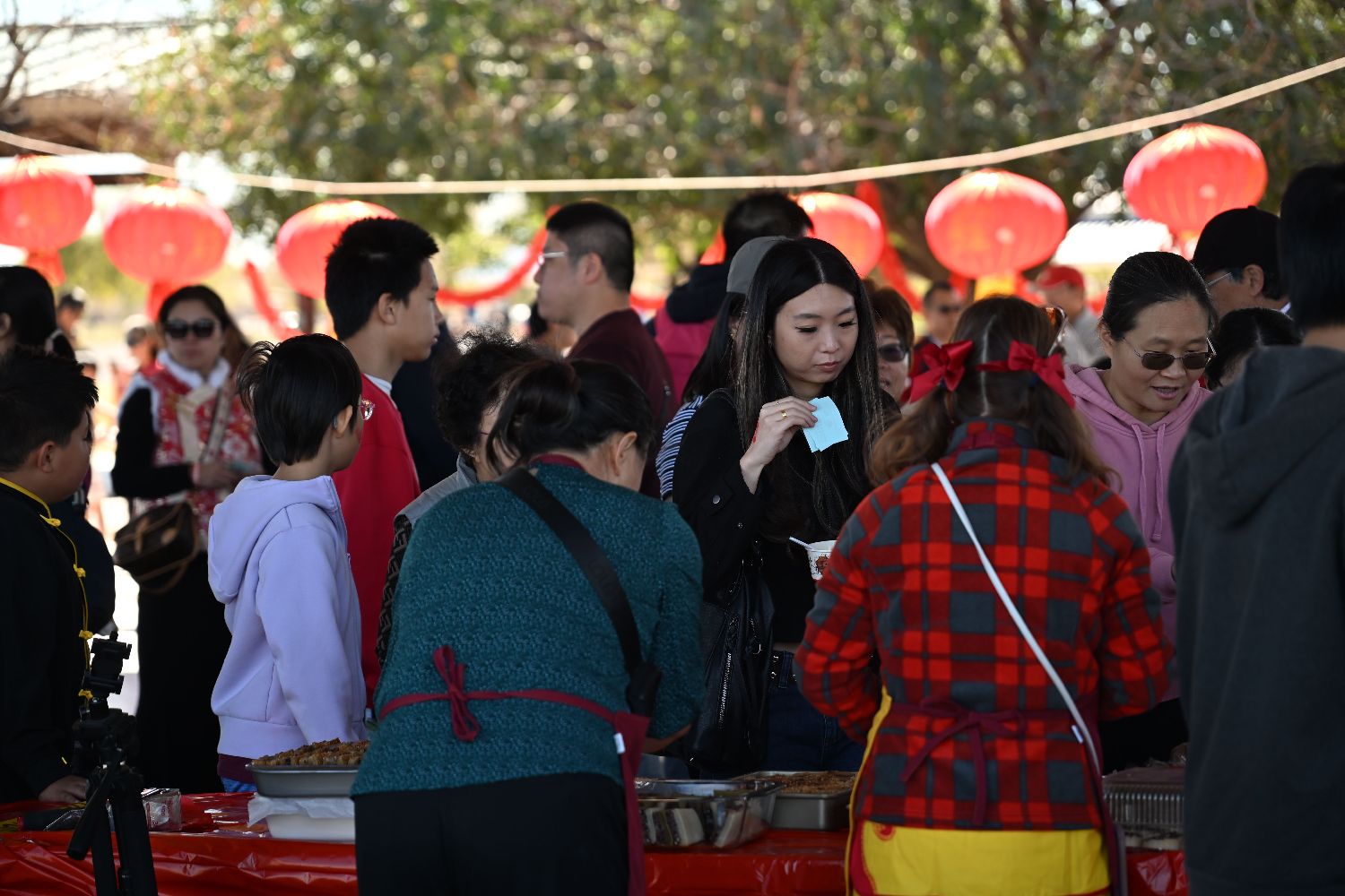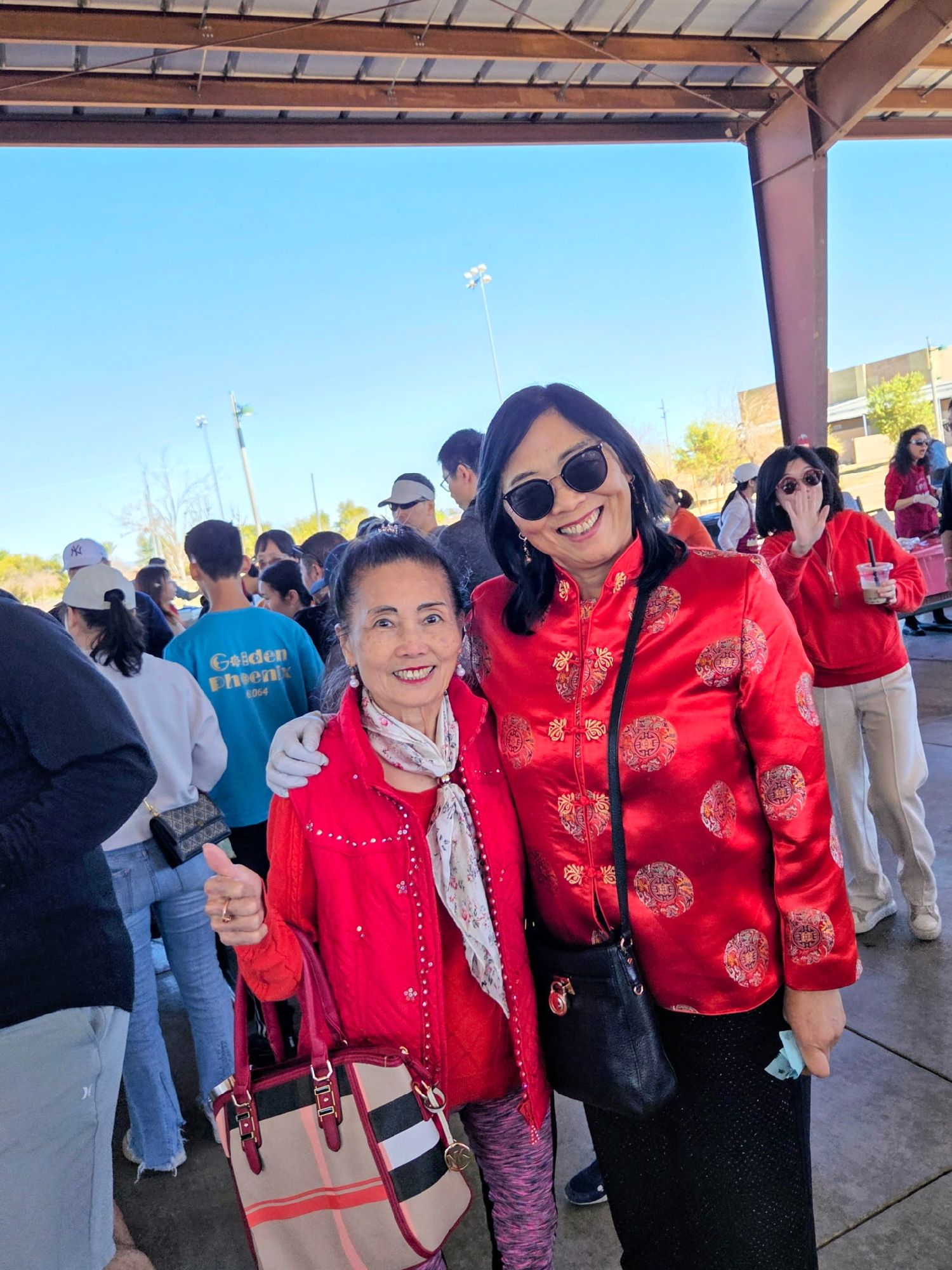 销魂饱腹,当此际!喧天的鼓声让人精神一振。英姿飒爽,彩扇飞舞,原来是腰鼓队的开场。紧接着,孩子们的Soda Pop,朝气蓬勃,老师们的拉丁舞,热情奔放,多姿多彩的才艺秀让人目不暇接。中午,主持人徐雪涛老师首先向大家拜了年。随后李健董事长在讲话中,盛赞了庙会的总指挥史敬嵬。我们的嘉宾CGCC校长CJ Wurster致辞中高度评价与希望中文学校长达十年的合作伙伴关系,並期待今后的长期合作发展。亚省地产赵鹏辉先生作为众多赞助本次庙会的机构与个人之一也致了辞。这场新春庙会非常荣幸地获得了广大社区的支持,包括AZ Community Foundation、AZ方太厨电、极光财富、赵鹏辉先生、舒之味、Top One Hot Top Asian Cuisine、南北小厨、Linda女士等等。接下来,自然是孩子们最开心的时刻。小朋友们欢蹦乱跳地排着长龙领红包,也领上一份新春的祝福。最后的压轴戏是新年福运大抽奖。咱们幸运的义工们,还穿着围裙呢,乐滋滋地上前领奖,全场笑声掌声阵阵,同喜同乐。