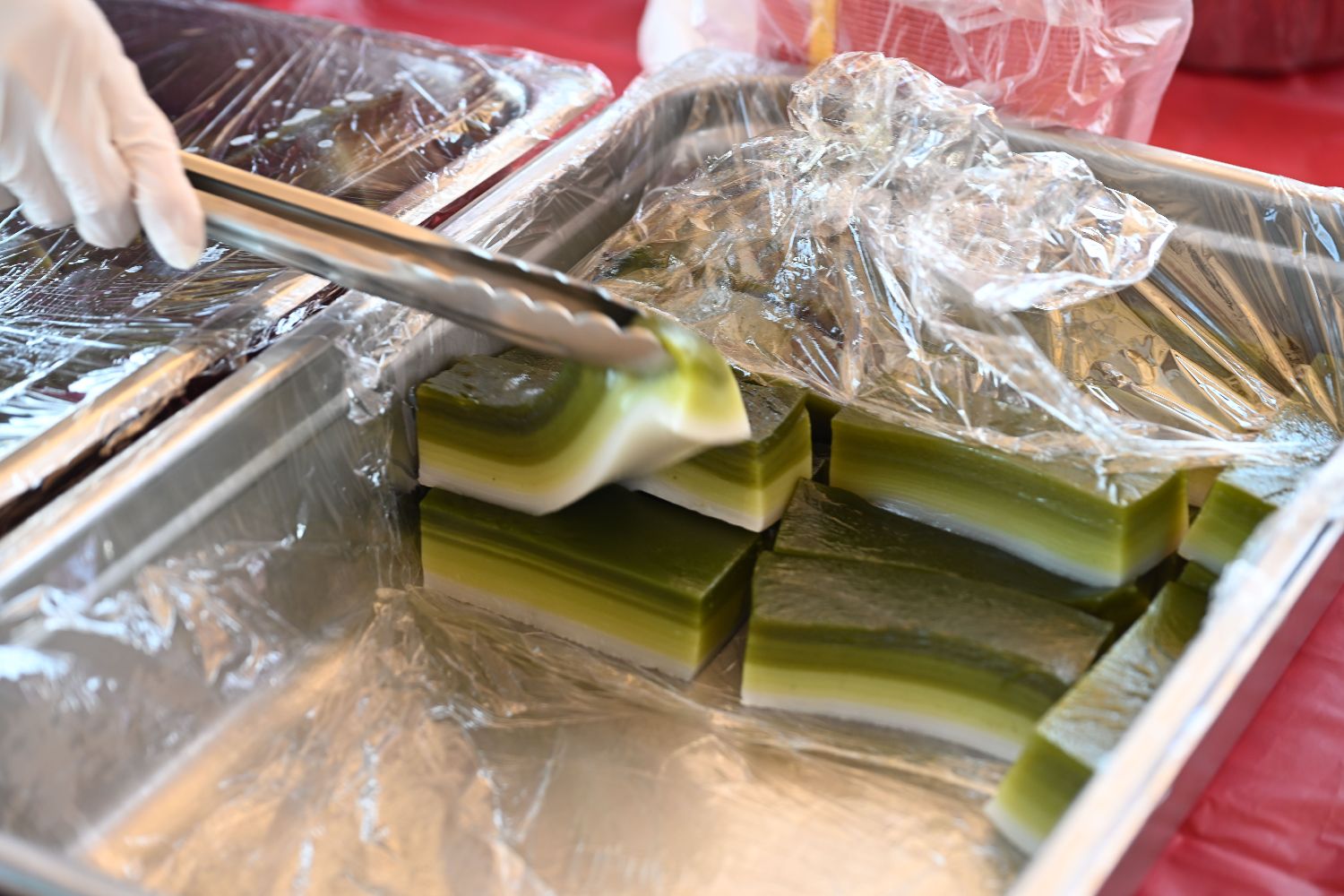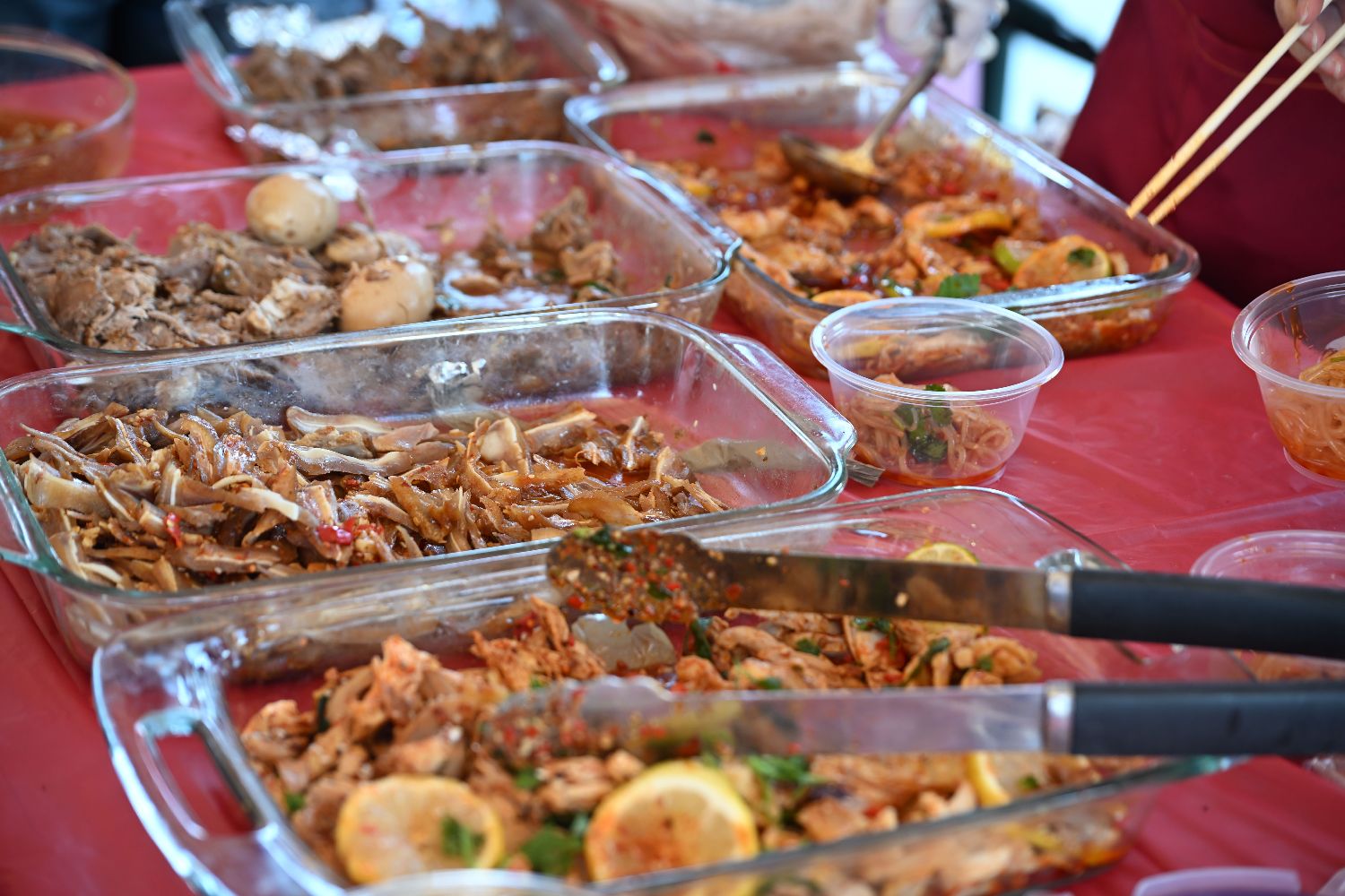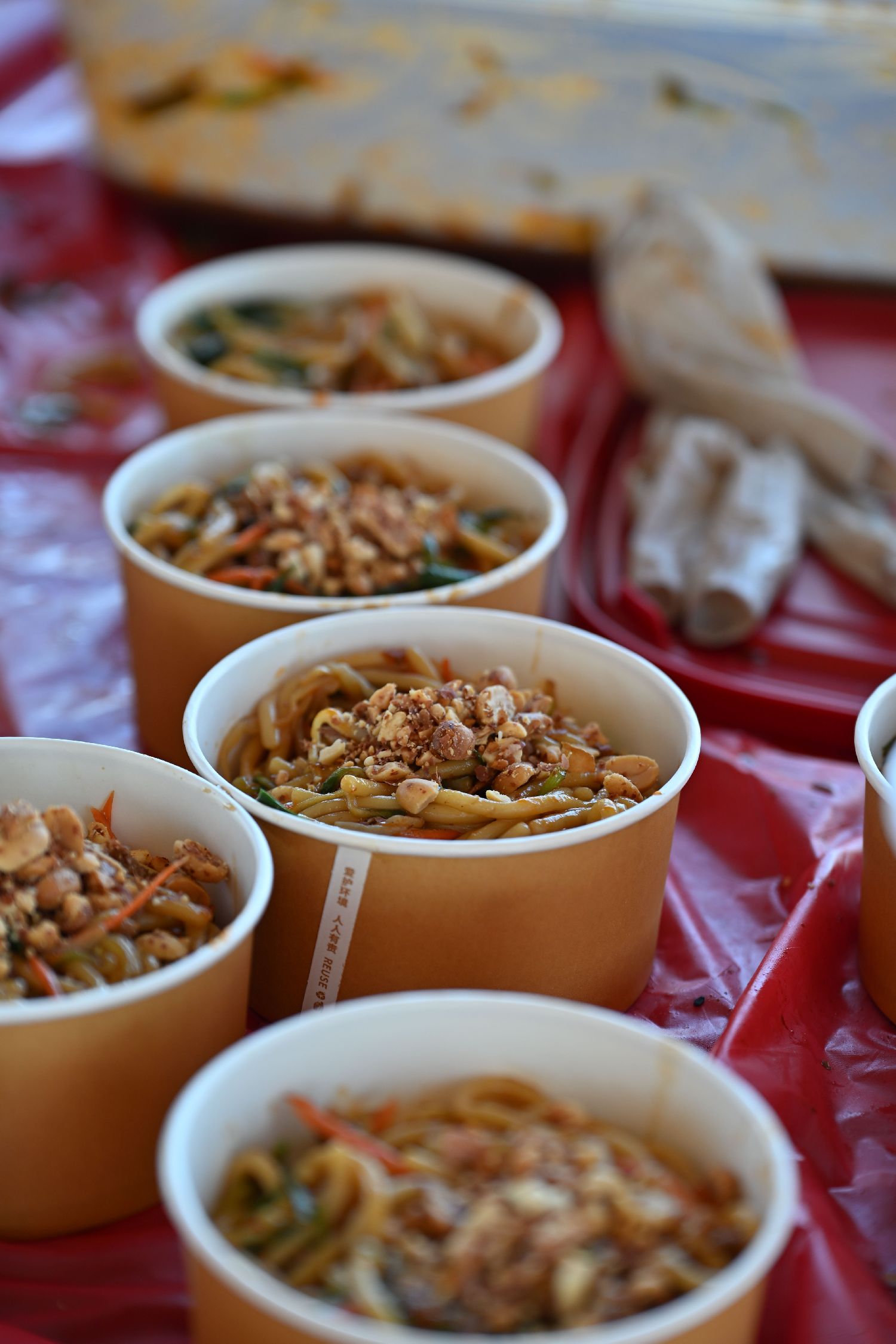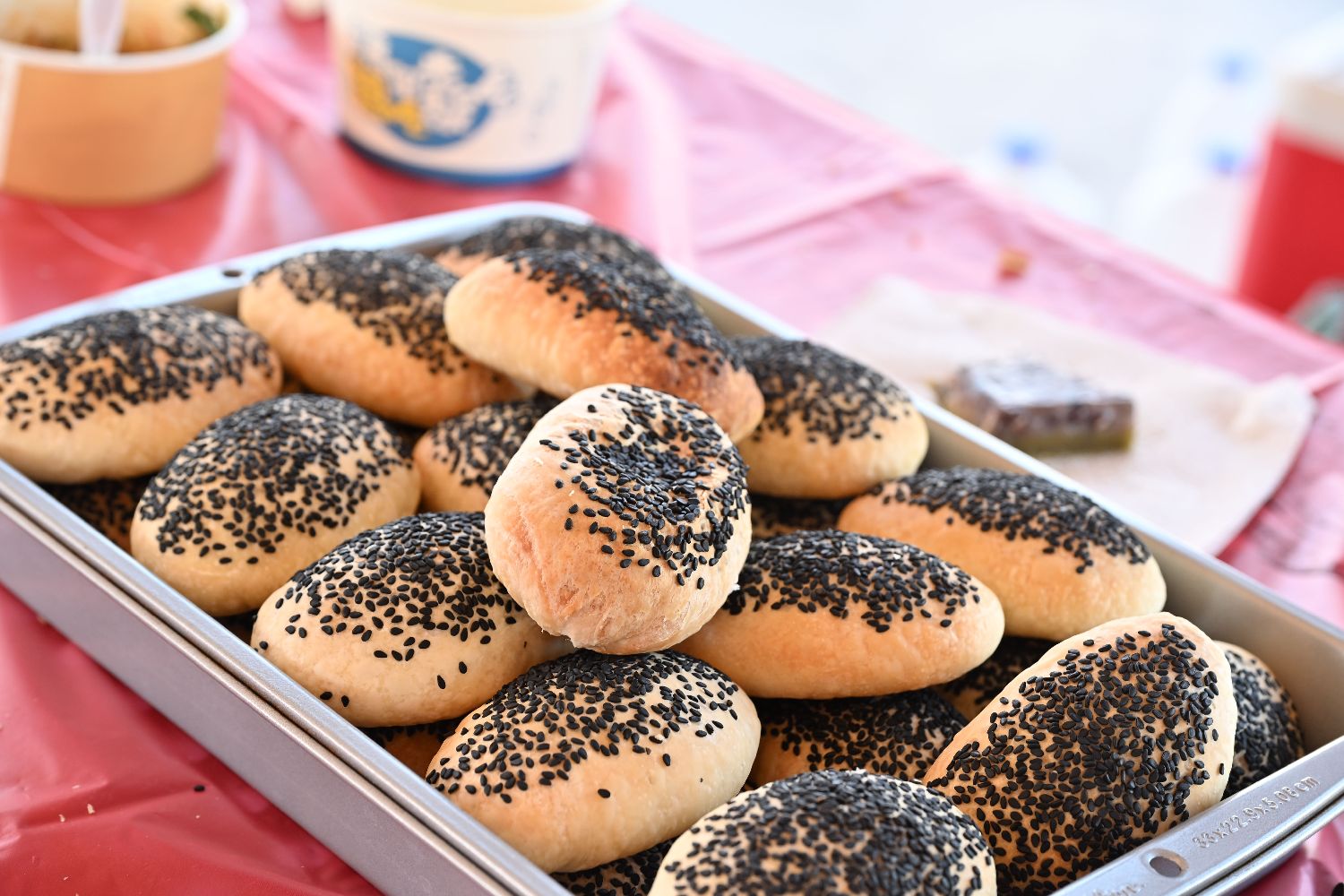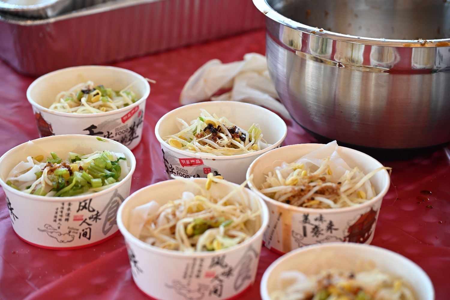 当你终于步入美食亭,无需指引,煎饼果子和肉夹馍香气四溢,勾引着你一往无前。今年的叫号取餐特别方便,大家等号期间得以逡巡其它美食摊位,吃喝不耽误。白家老号炸油条再次出山,大家都盼着呢。油条得配豆腐脑儿吧?赶紧都排上。丁丁博士特别有情商,见大家伙翘首以盼,在旁顺便诚挚邀请,来个吉祥如意大包子吧,家的味道哦。还有各地美食,糯米肠、肉松饼、椰汁千层糕、陕西米皮、云南七彩米粉、麻辣杂烩、重庆小面,数不胜数。这时的你,肯定特别纠结,左一碟右一碗已然放纵,可纵目处,仍诱惑满满。你看,南北小厨的蒸儿糕,雪白细腻,馅料丰盈,轻轻掰开,热气随着清香氤氲而出,其实不想走。可又想着爆珠奶茶润润喉,布丁蛋挞甜甜嘴,酒酿汤圆暖暖胃,双拼年糕节节高……都不可错过啊!