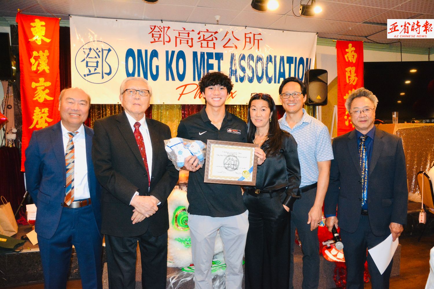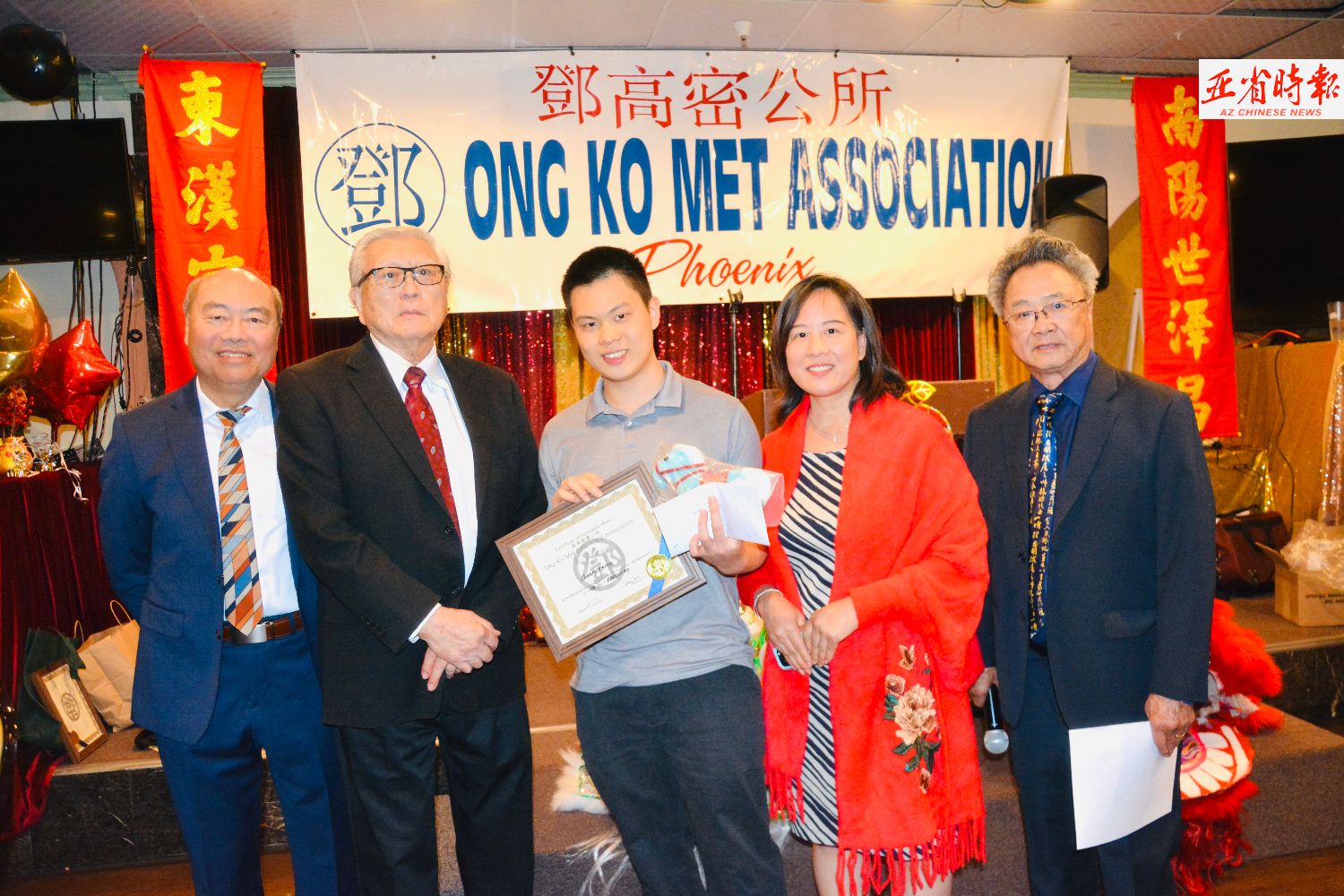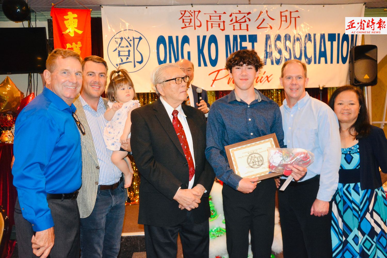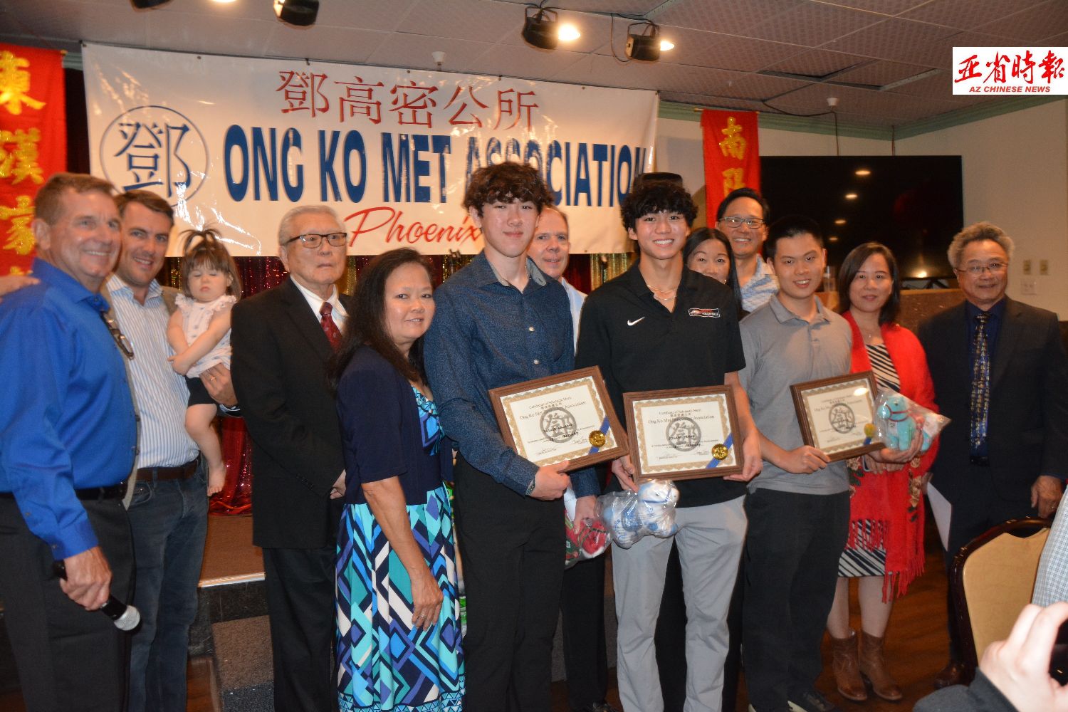 紧接着进行奖学金颁发仪式,由军泉与贺铮共同主持。今年获奖学子为Jayson Tang、Taylor Williams、Dylan Yeung,每人获颁一千美元奖学金支票。主席亲友团当场慷慨捐出现金三百美元,额外奖励每位学子一百美元以示鼓励,全场掌声雷动、气氛热烈。