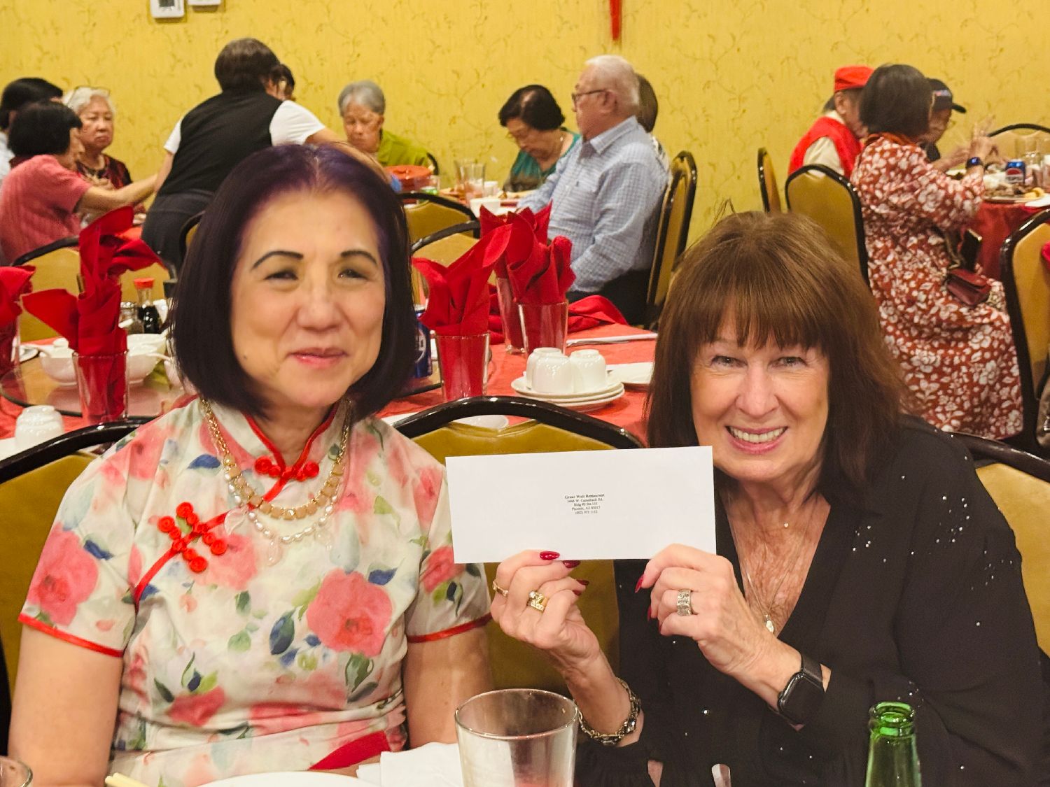 宾客们对六福酒家精心烹制的美味佳肴赞叹不已。晚宴间隙还穿插幸运抽奖环节,Mei Guan幸运抽中头奖——一台55英寸大屏幕彩电,为当晚再添喜庆。整场春宴在欢声笑语、热闹非凡的氛围中圆满结束。