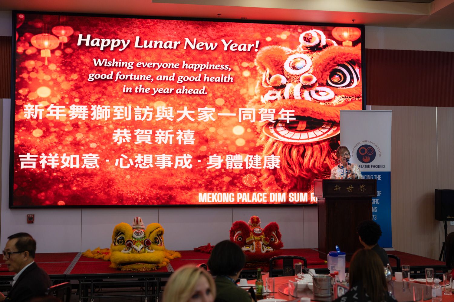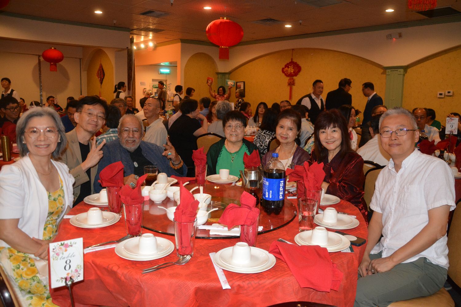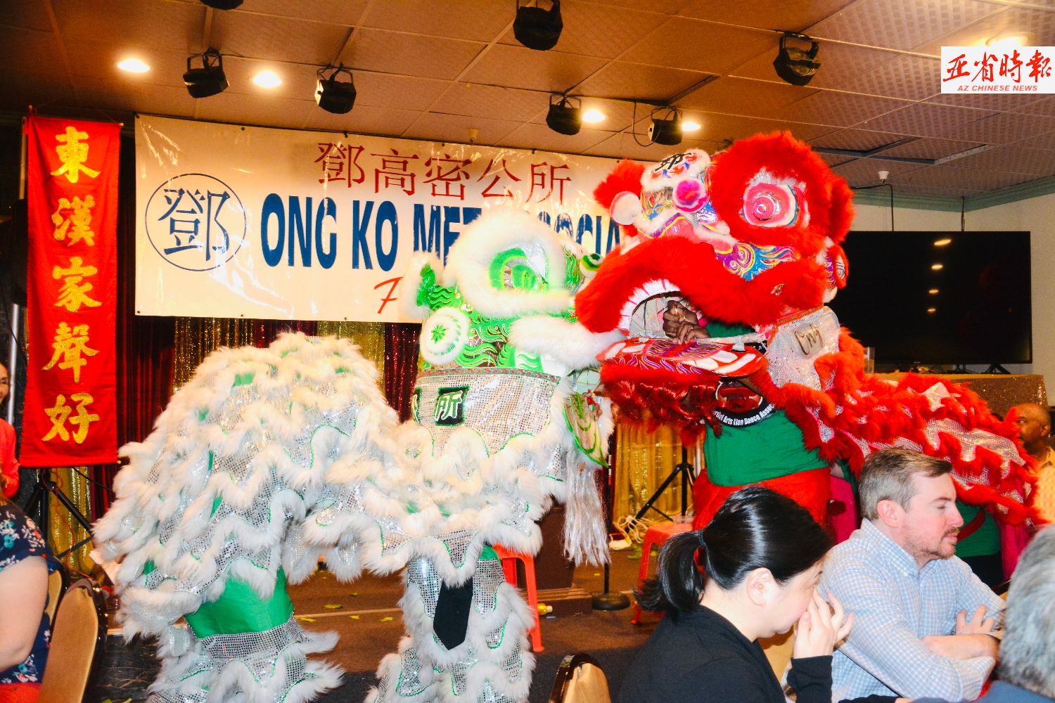 新任主席刘沃彪致欢迎辞,并率全体职员向来宾举杯,恭贺新春。大凤凰城侨联主席王瑞瑾、中餐馆公会主席邓朝驹,以及凤凰城龙冈首任主席关崇琼家后人先后登台致辞,为春宴送上诚挚祝福,现场气氛融洽而热烈。