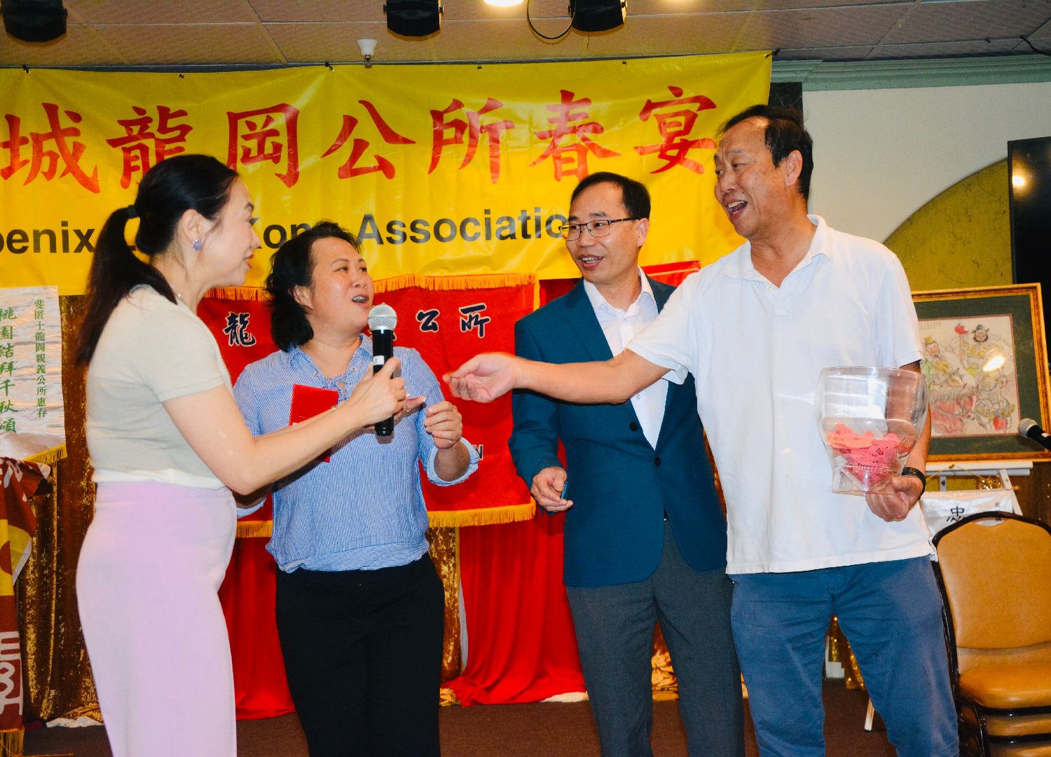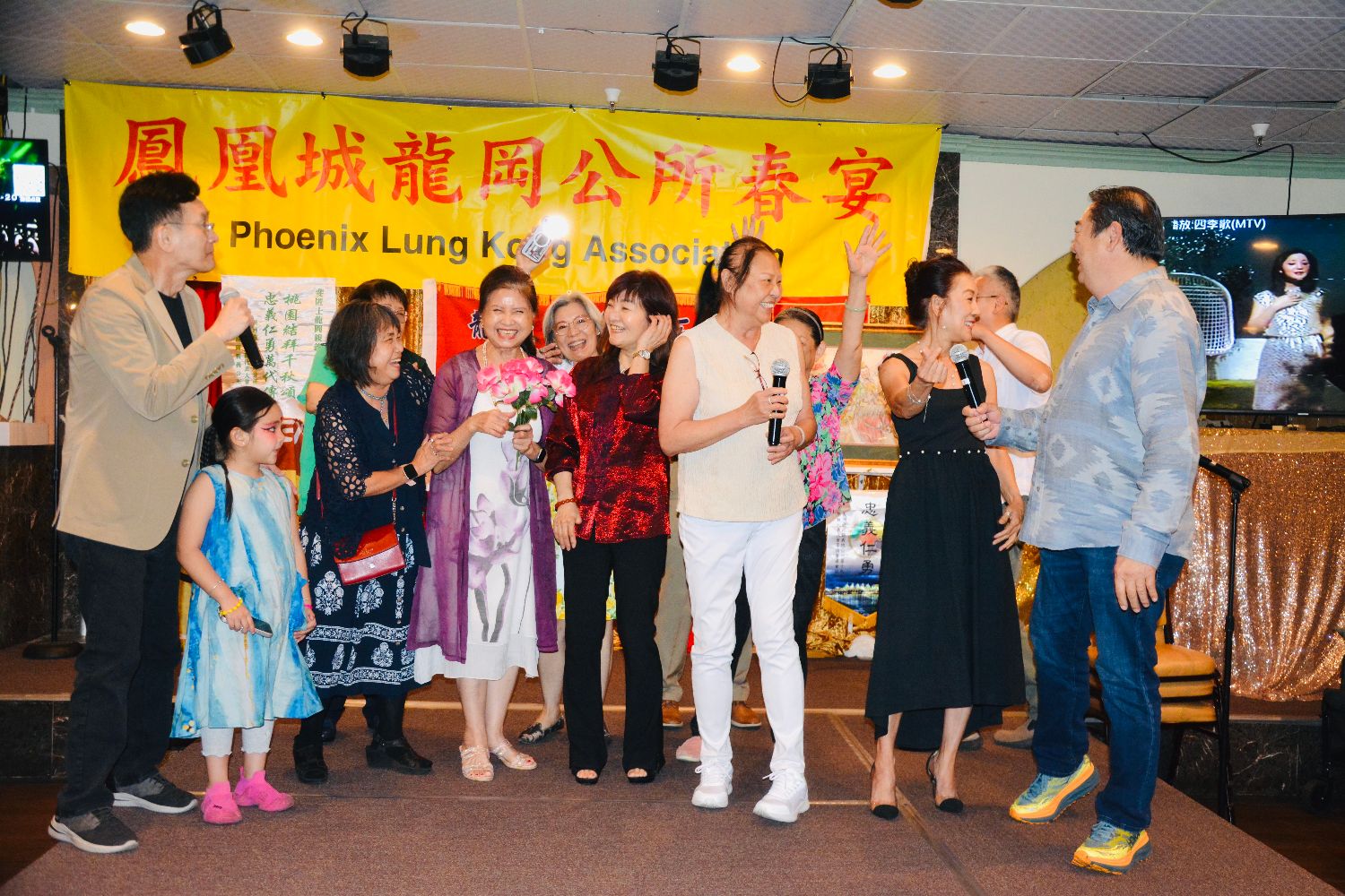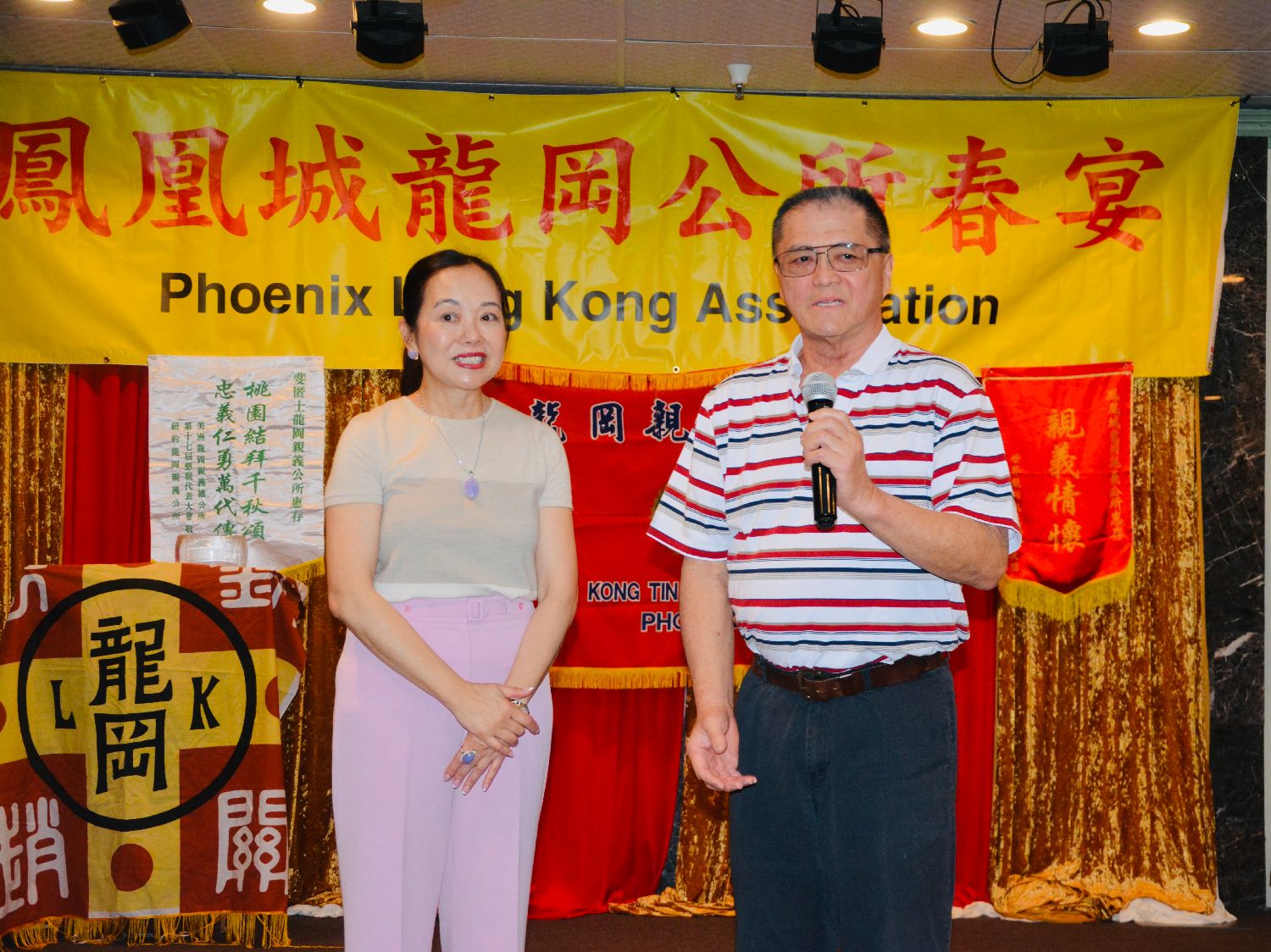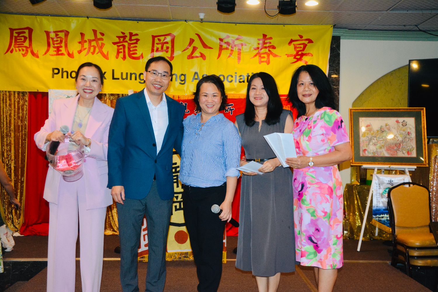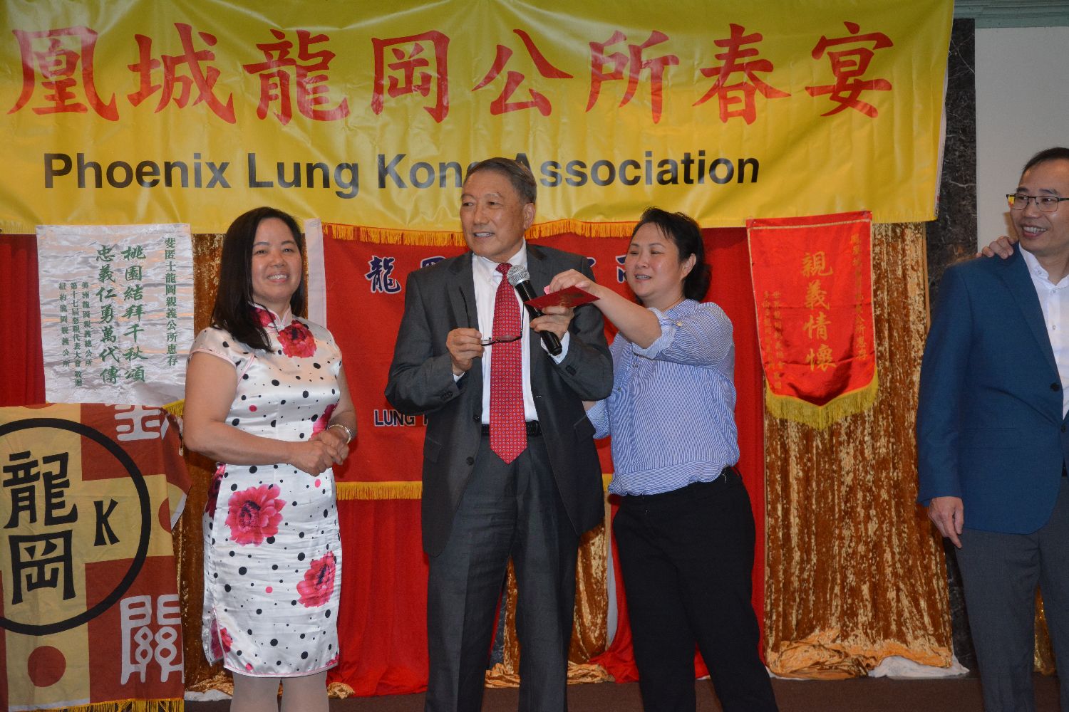 宴会由张华芳女士主持。她首先向来宾介绍龙冈公所的渊源:源于刘、关、张、赵四姓先祖桃园结义、古城相会的千古佳话,世代传承“忠、义、勇、仁”的精神。龙冈后人秉持这一精神漂洋过海,在世界各地落地生根、枝繁叶茂。凤凰城龙冈亲义公所会务蒸蒸日上,随着新生力量不断加入,未来发展前景更加广阔。