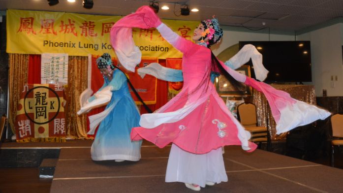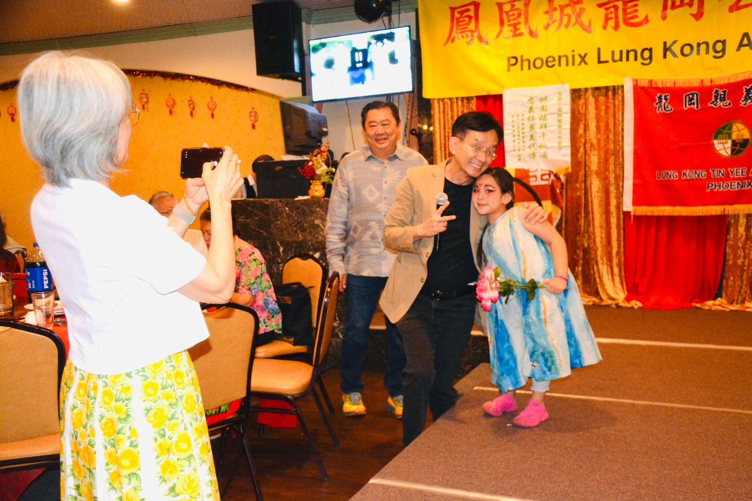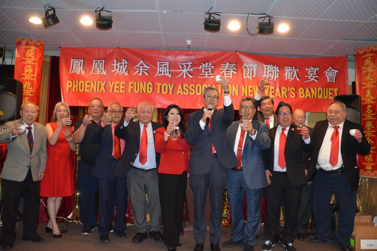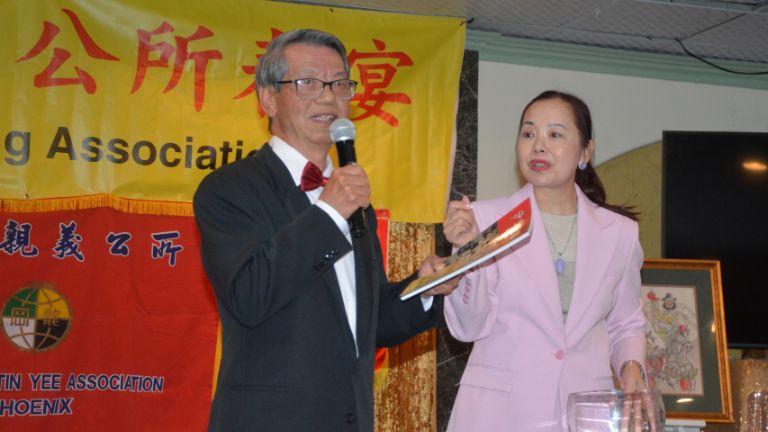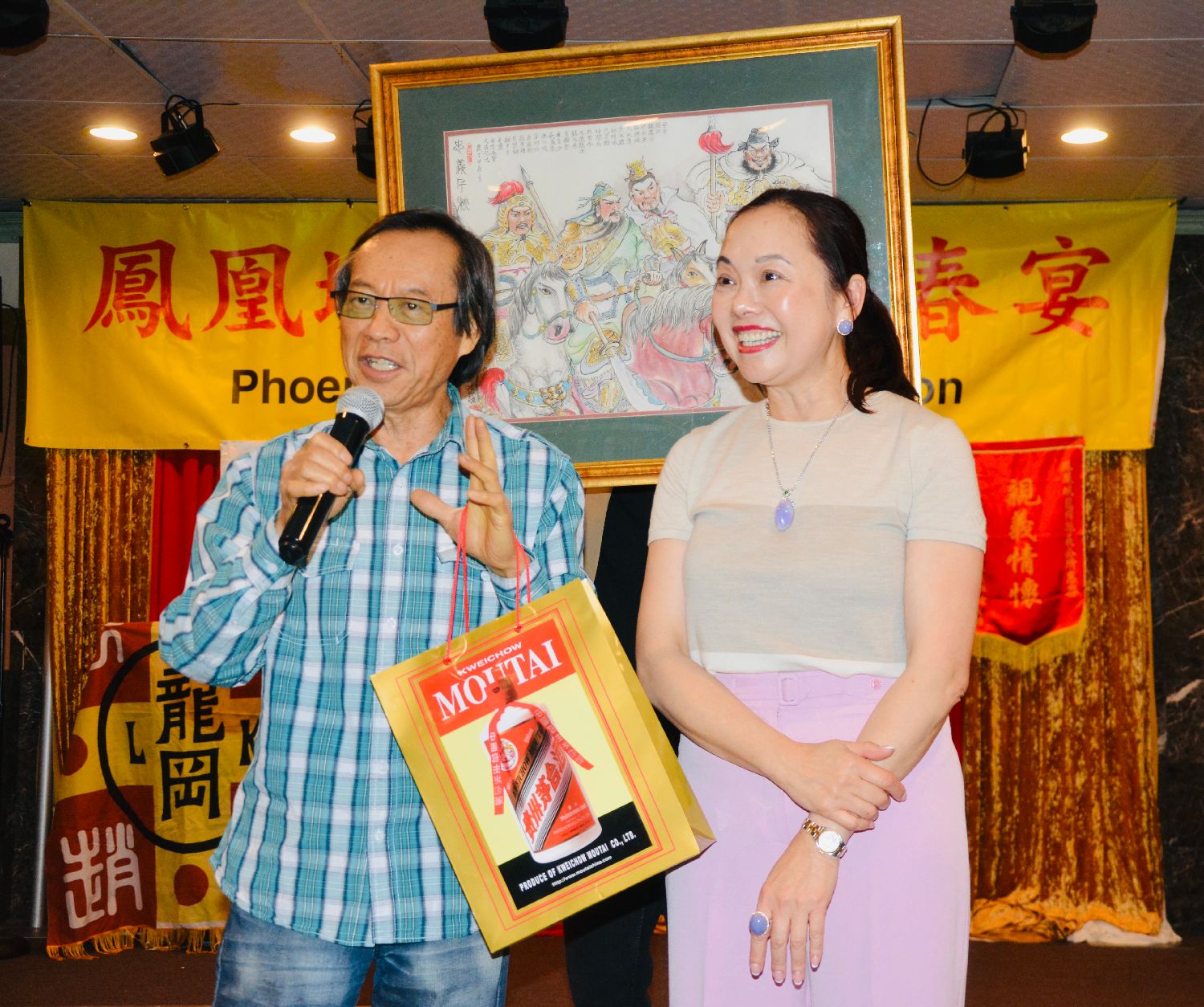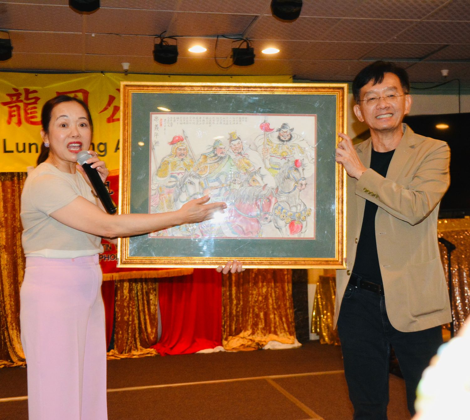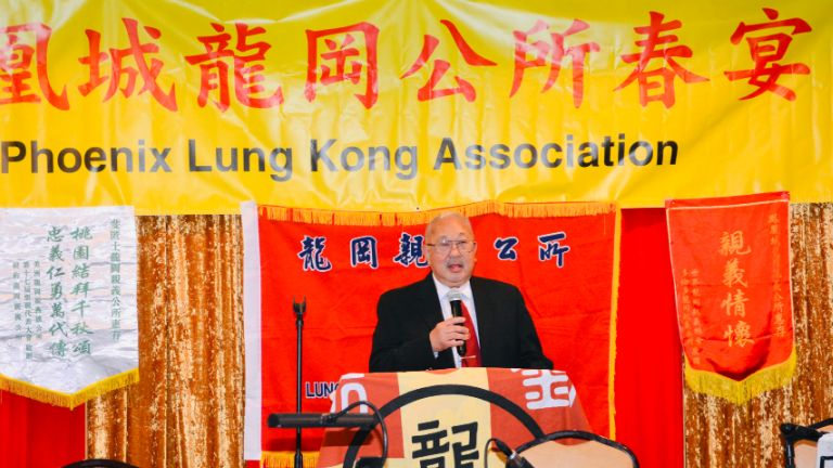 宴会由张华芳女士主持。她首先向来宾介绍龙冈公所的渊源:源于刘、关、张、赵四姓先祖桃园结义、古城相会的千古佳话,世代传承“忠、义、勇、仁”的精神。龙冈后人秉持这一精神漂洋过海,在世界各地落地生根、枝繁叶茂。凤凰城龙冈亲义公所会务蒸蒸日上,随着新生力量不断加入,未来发展前景更加广阔。