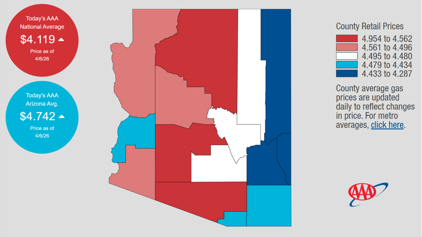 在全美范围内,加州仍为油价最高州之一,接近每加仑6美元;而俄克拉荷马州则维持在约3.28美元,形成明显落差。值得注意的是,亚利桑那州当前平均油价约为每加仑4.73美元,位居全国前列,成为西部地区油价较高的州之一。