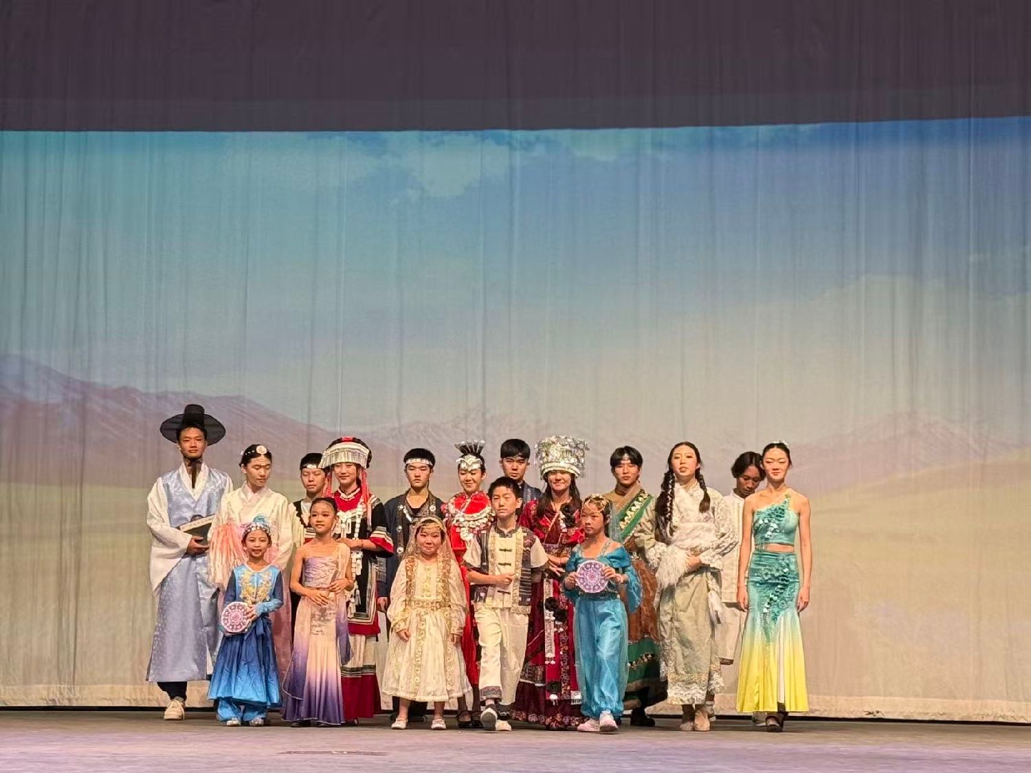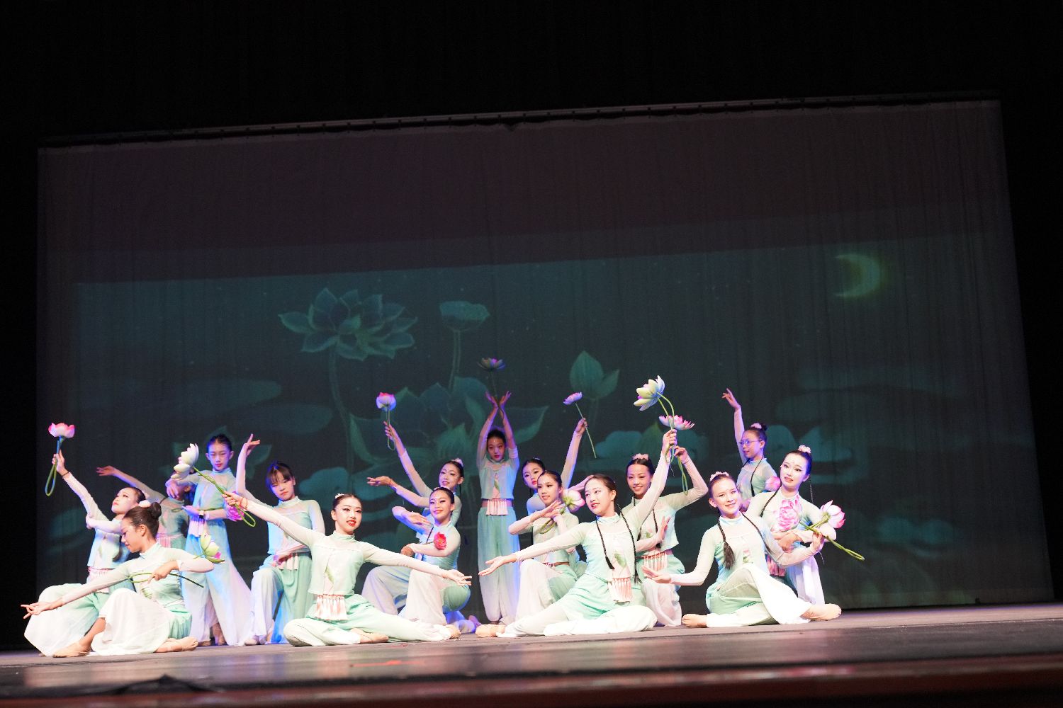 After an exhilarating performance, the show continued with two elegant dances: Whispers of the Flowers from Dragonfly Arts Academy and Flowing Light, a solo piece from Sophia Zhao. Without missing a beat, the Phoenix Orchestra picked up the energy with Carmen and A Loyal Heart Bleeds for Justice, two classics, before Teacher Kuang Yuyang and her students continued engaging the audience with their passionate K-pop dance to the popular song Golden. Then Laura Lin brought us a surprise with an iconic performance, playing a theme song from a well-known 1980s movie with the ACPHS Orchestra. The first half of the show was beautifully rounded off with the bittersweet poem Ballad of Hometown.